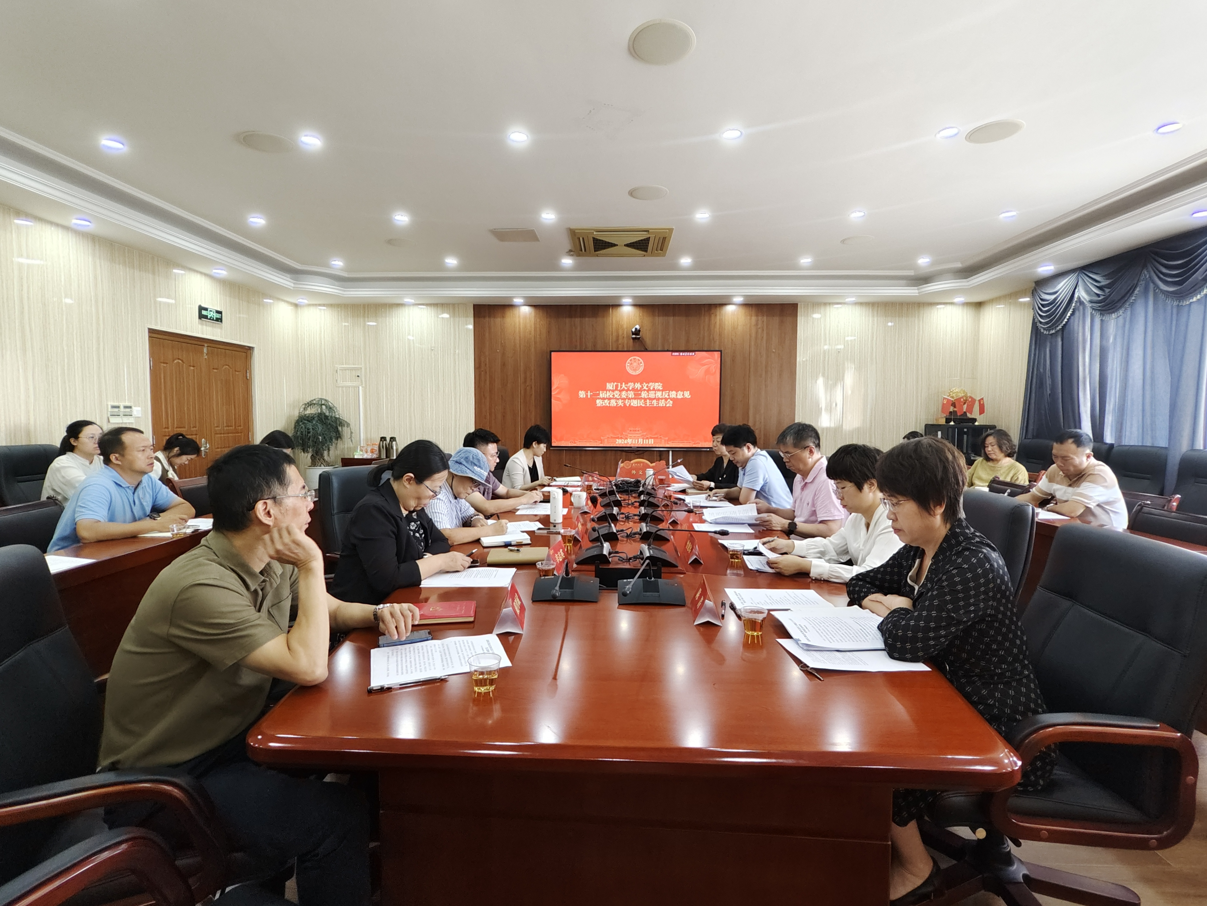 校纪检监察机构第二纪检监察室主任曾惠容,第二巡视组组长邱七星、第二巡视组副组长张清榕到会指导。外文学院党委书记徐琪主持会议并讲话,院长陈菁,党委副书记张胜强、罗俊峰,副院长辛志英、江桂英、戴鸿斌、刘悦出席会议。学院科级干部列席会议。
