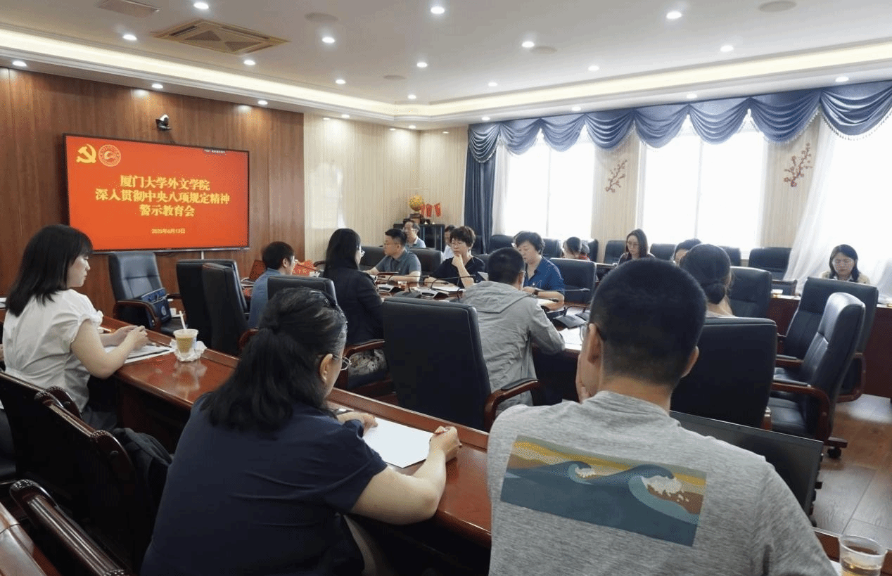 6月13日上午,外文学院党委在南光三515会议室召开深入贯彻中央八项规定精神学习教育警示教育会暨理论学习中心组(扩大)会议。学院处级领导干部、各系部负责人、工青妇负责人、教工党支部书记、科级干部参加会议,会议由学院党委书记徐琪主持。