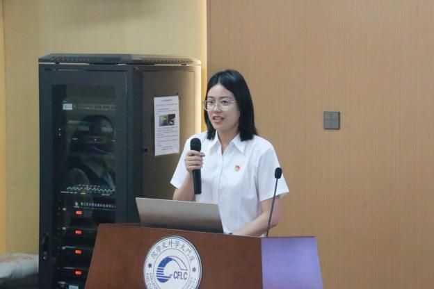 六位毕业生党员代表依次分享了个人成长经历与青春感悟,以真情实感诠释新时代青年党员的责任与担当。2021级英语专业本科生杨钧琰以“感受人文的温度”“突破认知的边界”与“坚定使命和担当”为关键词,回顾她在学术探索中的突破时刻以及社会实践里的使命感悟,展现外文学子的多元风采。2021级英语专业本科生周宁棪薷用“厚积”“远眺”和“回响”串联起与学院、学校及党的青春故事,分享她在学生工作里的深邃思考以及实践服务中的深刻领悟,彰显青年党员的担当与情怀。2021级法语专业本科生赵彦博以“逐梦、成长与蜕变”为主线,描绘大学四年的学习与生活,讲述他在专业学习中的不懈探索,诠释外文学子的奋进与自强。2021级俄语专业本科生邓春花借“以青春之我,燃外文之光”为题,讲述她在专业学习中的扎实积累、服务同学时的无私奉献、支部工作中的严谨细致以及社会实践中的责任担当,突出外文学子的风采与精神。2022级英语语言文学硕士生于馨悦以“保持坚定、保持敬畏、保持耐心”三个关键词,分享个人成长与党员使命融合的心路历程,通过社会实践深入基层,了解民生百态,不断坚定理想信念,体现新时代青年党员的理想与追求。2022级德语语言文学硕士生戴冰枝回顾七年的奋进之路,使她具备在国际交流中自信表达的实力,以实际行动将跨文化素养化作助力企业品牌出海的力量,在国际商业舞台上绽放光彩。他们将爱党爱国之情熔铸逐梦征程,书写新时代青年党员许党报国的壮丽篇章。