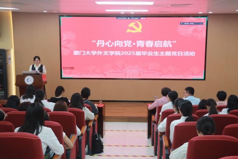 为深入学习贯彻习近平总书记关于加强党的作风建设的重要论述和中央八项规定精神,勉励毕业生党员增强政治素养、锤炼政治品格,以奋进之姿扛起新时代青年的责任与担当,6月23日上午,外文学院“丹心向党·青春启航”2025届毕业生党员主题党日活动在南光三112报告厅举行。学院党委书记徐琪,党委副书记张胜强、罗俊峰,辅导员、党务秘书,以及全体毕业生党员参加活动。活动由2022级硕士研究生第二党支部书记陈琳主持。