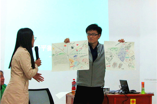 11月27日19时30分,外文学院“牛仔很忙”心理沙龙在南光四100顺利开展。厦门大学心理咨询与教育中心专职教师黄福生担任本次沙龙的主讲人,以“如何平衡学习、工作和生活”为主题,为同学们答疑解难。20名外文学院2015级同学参与了本次活动。通过黄老师的悉心讲解与互动游戏环节,同学们对如何在大学生涯中进行学习、工作和生活的协调有了进一步的认识与了解。 沙龙在轻松舒缓的音乐中开始,老师与同学们围圈就座。首先,同学们就“如何平衡学习、工作和生活”的问题提出了学业压力大、闲暇时间少、缺乏自制力、各项活动难以平衡等困扰。黄老师对同学们的困扰表示理解,并以互动游戏的方式循循善诱,请同学们在接下来的“交替涂鸦说故事”环节中进行感悟并寻找答案。 “交替涂鸦说故事”是两人一组、交替作画的互动游戏。在本环节中,同学们的画作风格或文艺清新,或搞怪嘻哈;题材涉及风景画、人物画、Q版画等各种类型,图画中柯南、海贼王、哈利・波特、少年派、小王子纷纷亮相……同学们放下了日常生活中的紧张和压力,在绘画过程中释放自己的激情和活力,创意百出、天马行空,参与热情格外高涨。作画结束之后,老师请同学们相互交流自己的绘画过程,两个小组的同学积极分享了小组创作中的趣事,并以其新颖的创意、活泼的画风赢得了大家的阵阵掌声。 “交替涂鸦说故事”环节结束之后,黄老师引导同学们对本环节的收获进行讨论与分享。同学们表示在交替涂鸦的过程中感受到了压力的释放和心情的放松,体会到小组合作与交流的乐趣,收益颇丰。 最后,此次沙龙在黄老师的总结中结束。他指出:“时间太少,事情是做不完的,更无法事事完美。最重要的是知道自己想要什么,精神幸福才是真正的幸福。”黄老师的一番话深入浅出,使同学们认识到在忙碌的大学生活中要学会树立自己的目标,快乐地学习、工作与生活,才能促进自身的全面健康发展。 本次沙龙根据我院各班心理委员上交的月度心理报表反馈内容,针对大家在大学生活中遇到的问题,以新颖有趣的形式,使同学们在合作画图中体验到生活的多彩,了解到了自我调节的重要性,并引导同学们以积极乐观的心态对待学习、工作和生活,对当代大学生的健康成长具有积极的现实意义。  同学们交流困惑