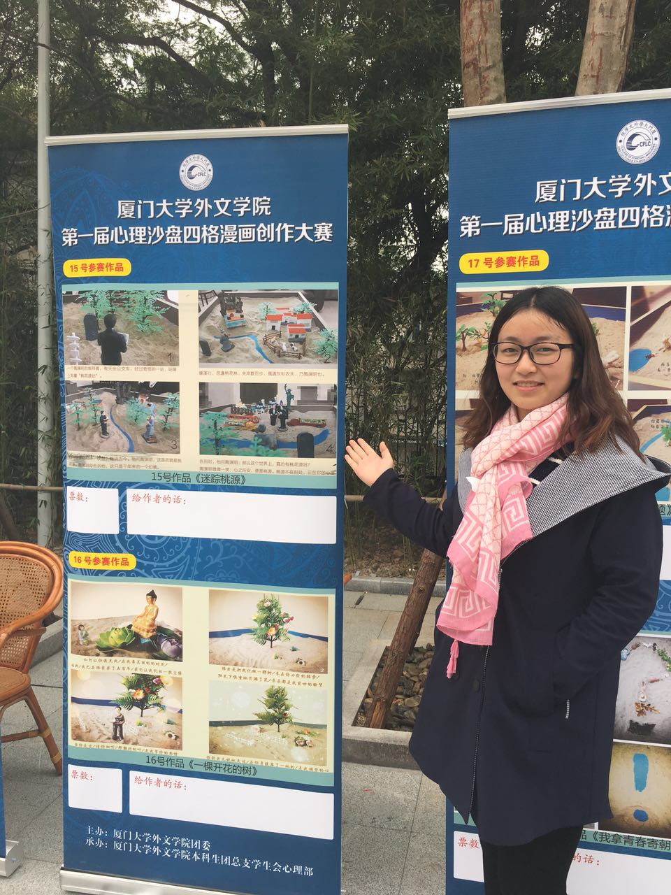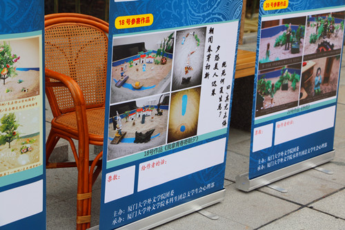 | 12月21日12时30分,由厦门大学外文学院本科生团总支心理部举办的心理沙盘四格漫画创作大赛在外文学院南光三广场凤凰台进行了现场作品展示和评选。本次比赛邀请了厦门大学学生处副处长刘艳杰老师,心理咨询与教育中心的赖丹凤、陈梅香、祝婧媛、黄福生、姚莹颖等几位专业老师担任嘉宾评委;外文学院院长张龙海,院党委副书记郑新风、杨云良,院团委书记、研究生辅导员乐无恙,院团委副书记、2012级本科生辅导员肖盈,院团委副书记、2014级本科生辅导员戴晓燕,2013级本科生辅导员张闻博, 2015级本科生辅导员周晓牧、杨盛澜也莅临评选现场。 本次创作大赛自11月15日至12月15日持续一个月,同学们积极响应号召,创作了二十份优秀作品,切实贯彻了“徜徉四格空间,构筑我的世界”的大赛主旨。比赛结果由两部分组成,即评委根据参赛作品及选手现场解读打分,以及在场师生不记名投票。 在同学们的作品中,不仅有对现实事件的解读认知、对寓言故事的重新探索,还有对爱情观、人生观的深度思考。漫画的种类多样、构思巧妙、主题鲜明,体现了当代大学生的心理状态和艺术修养。同学们的现场解读更为风格各异,有的风趣幽默,有的引人深思,通过参赛选手的现场解说,更进一步地展示了沙盘漫画的深刻立意,使比赛评委及在场师生更好地了解了参赛作品。 本次心理沙盘四格漫画创作大赛将沙盘与漫画的形式相结合,以新颖的比赛方式,为同学们提供了一个表现心理意识、展现艺术修养的平台,丰富了同学们的课余文化生活,对于鼓励同学们传达心灵感悟、抒发内心情感具有积极的引导作用。  参赛作品展示  在场评委及嘉宾  参赛选手讲解作品  评委老师听参赛选手讲解作品  学生现场投票  参赛选手介绍作品  参赛选手介绍作品  参赛选手介绍作品  四格漫画展  四格漫画展 | |