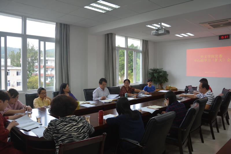 11月8日下午,外文学院党委在南光三524召开本学期第一次中心组学习,专题学习党的十九大精神。院党委委员、党员系(部)主任、教工党支部书记,院工会主席,院办公室主任,院团委书记、副书记等中心组成员与非党员院领导、学院科级干部、财务人员共同参加,会议由陈志伟书记主持。