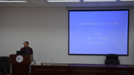 “十九大报告体现的民生思想怎么看”,“如何理解全面建成小康社会的含义”,“为什么说社会保障体系事涉总体国家安全”……带着这些问题,11月20日下午,外文学院教职工们走进第十期红色外文大讲坛,聆听校学习宣传贯彻党的十九大精神宣讲团成员,校党委党校常务副校长高和荣教授带来的“习近平新时代中国特色社会主义思想解读”十九大精神专题辅导报告。报告由学院党委书记陈志伟主持。高老师为大家梳理了报告中体现的社保、民生方面的建设成就,对比了中西方社会保障待遇提高的不同方式,并结合十九大报告原文,为大家展示了未来社保制度的规划与发展战略。高老师的讲座大到国家大政方针,小到老师们手头一张社保卡,管中窥豹,点面结合,给大家提供了学习十九大报告的全新视角。报告结束后,老师们踊跃提问,就各自关心的医疗、社保问题与高老师深入交流。有老师表示,原来十九大报告如此贴近自己的生活,也对未来国家和老百姓两个层面的走向掌握得更清晰了。