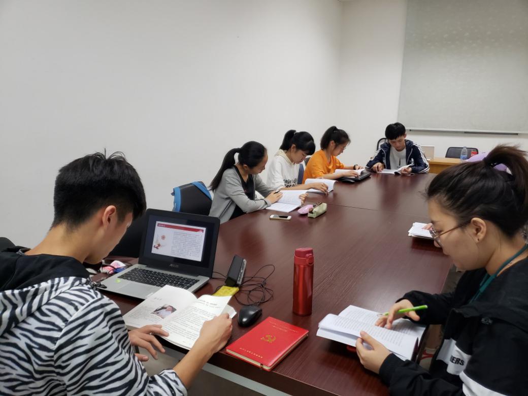 10月18日晚上,外文学院本科生第一党支部在德贞楼211开展“不忘初心、牢记使命”主题教育集中学习研讨,学习主题为“心有大我,至诚报国”,党支部书记凌震主持会议。