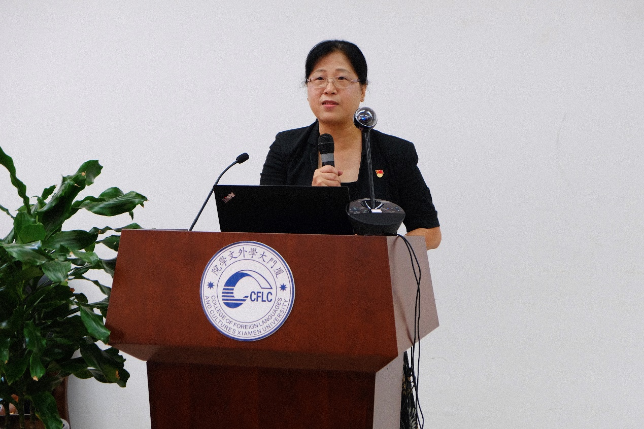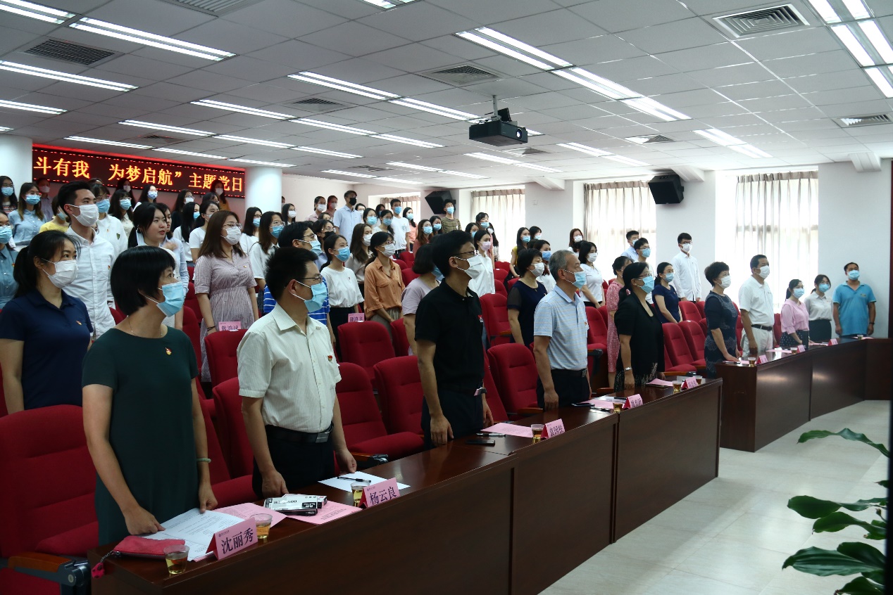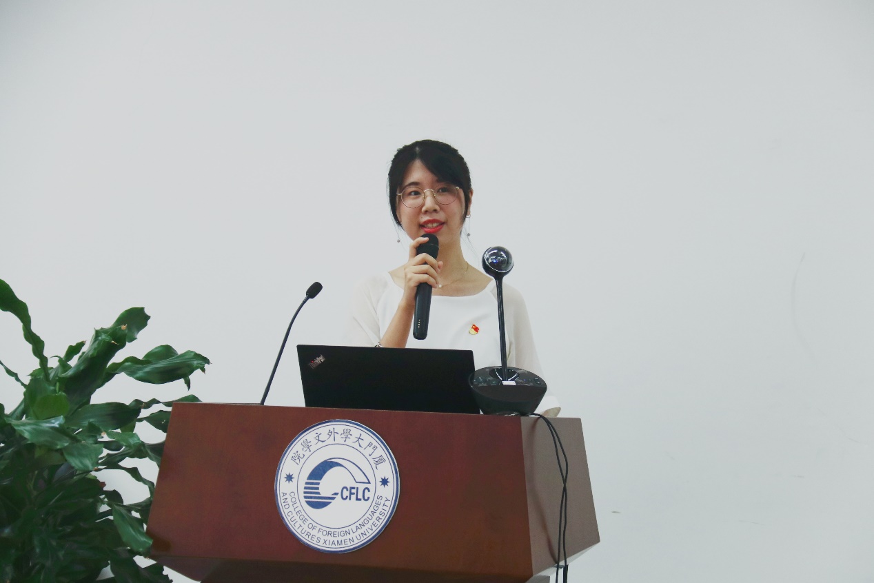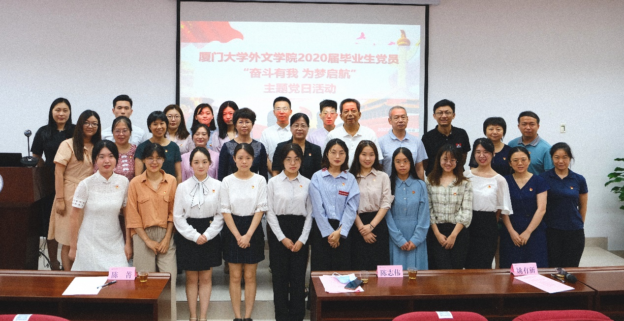 6月17日,由厦门大学外文学院毕业生党员跨支部联合举办的毕业前最后一次“固定党日+”活动——外文学院2020届毕业生党员“奋斗有我 为梦启航”主题党日活动在德贞楼112报告厅举行。校党委组织员、党建办副主任姚有新,校学生工作部(处)副部(处)长袁国柱,校团委副书记文静,校基层党建工作联络员黄定基,外文学院党委书记陈志伟,院长陈菁,学院党委副书记杨云良、沈丽秀,党委委员、副院长徐琪等受邀出席本次活动。毕业生党员在线下和线上两个会场参加活动。活动由2017级硕士研究生第一党支部书记臧康华主持。