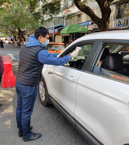 抗疫阻击战中的后勤担当。于丹红、杨耘硕等同志积极参与社区防疫志愿者工作,站好社区“排查兵”和“后勤兵”的岗位。