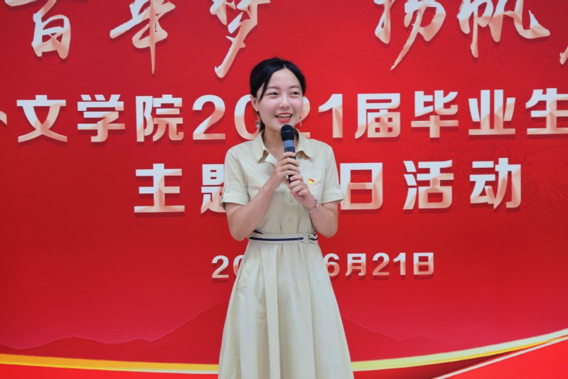 活动邀请了五位优秀毕业生党员代表分享自己的青春故事和奋斗历程,激励在座党员逐梦扬帆、砥砺前行。 2018级硕士研究生第一党支部傅辰鋆在毕业后即将以选调生身份入职上海市人民政府外事办。他表示,作为外文学院的学生党员,自己将自觉肩负起联结中外、沟通世界的职责使命,运用专业技能,讲好中国故事,传播好中国声音,向世界展示全面立体真实的中国。 |