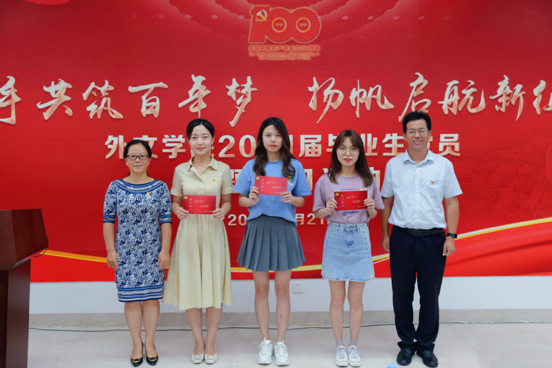 为庆祝中国共产党成立100周年,加强党史学习教育,勉励毕业生党员铭记奋斗历程,勇担时代使命,6月21日,外文学院2021届毕业生党员“携手共筑百年梦 扬帆启航新征程”主题党日活动在德贞楼112报告厅举行。厦门大学基层党建工作联络员黄定基,组织部副部长乔连全,党史学习教育第五指导组副组长邹海燕,外文学院党委书记陈志伟,党委副书记马龙、沈丽秀,党委委员、副院长徐琪等出席本次活动。活动由本科生第一党支部党员高凌雪主持。