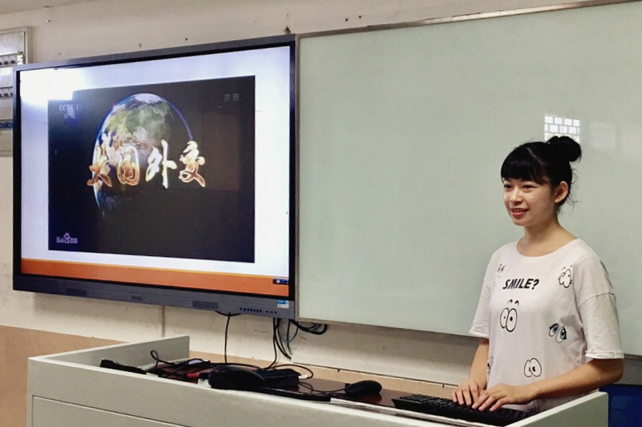 外文学院党委副书记郑新风和同学们一起观看《大国外交》纪录片