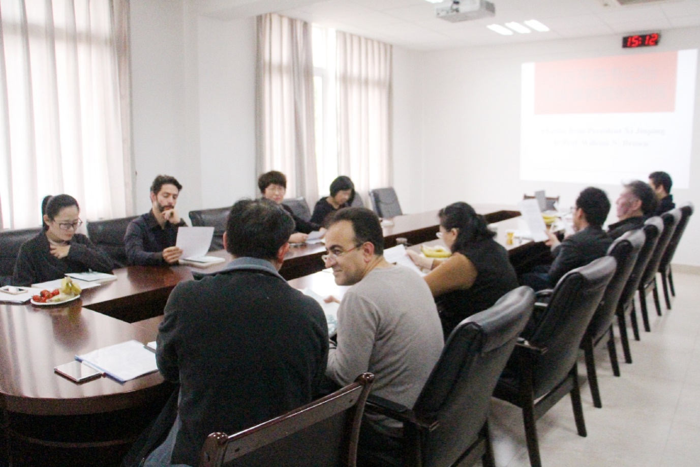 2月22日下午3点,“习近平总书记给潘维廉教授的回信”学习交流会暨外教座谈会在德贞楼524教室举行。会上,外籍教师们共同学习了习近平总书记给我校管理学院外籍教授潘维廉的回信精神,学习潘教授“不见外”的生活态度,畅谈自己的“中国故事”。外文学院院长陈菁主持会议,法语语言文学系主任鲁京明、英语语言文学系副主任林斌、外语教学部副主任胡永洪、日语语言文学系副主任任星等中国教师代表及多名外籍教师代表参会。