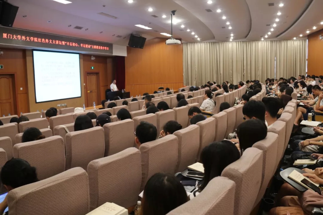 近年来,外文学院通过“红色外文大讲坛”邀请了台湾研究院刘国深教授,南洋研究院/国际关系学院庄国土教授,教育研究院别敦荣教授,宣传部部长徐进功教授,校党建办主任、组织部副部长廖志丹等校内外知名专家为学院师生作报告,为师生搭建了一个良好的政治理论学习平台。今后,外文学院党委还将继续拓宽师生政治理论学习的深度和广度,丰富学习形式和载体,引领师生深入学习贯彻习近平新时代中国特色社会主义思想,凝聚起推动学院学科发展建设和管理水平提升的磅礴力量。