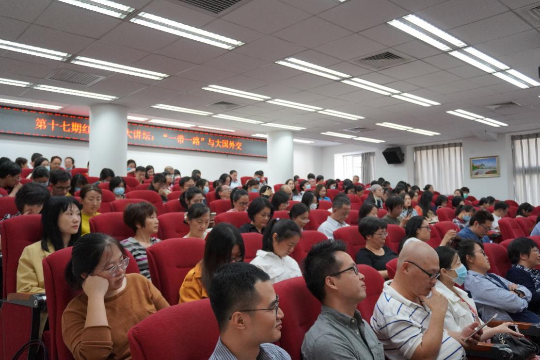 李丹教授围绕主题从“一带一路”拓展中国外交舞台、中国的大国外交、“一带一路”彰显中国外交担当三个方面展开讲座内容。