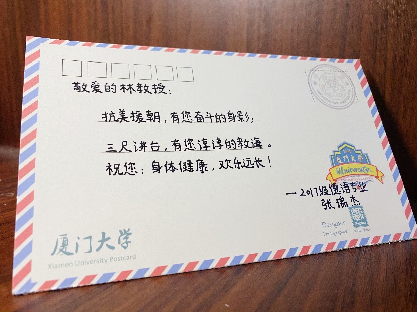 本科生第四党支部党员们为林湘玲教授赠送明信片