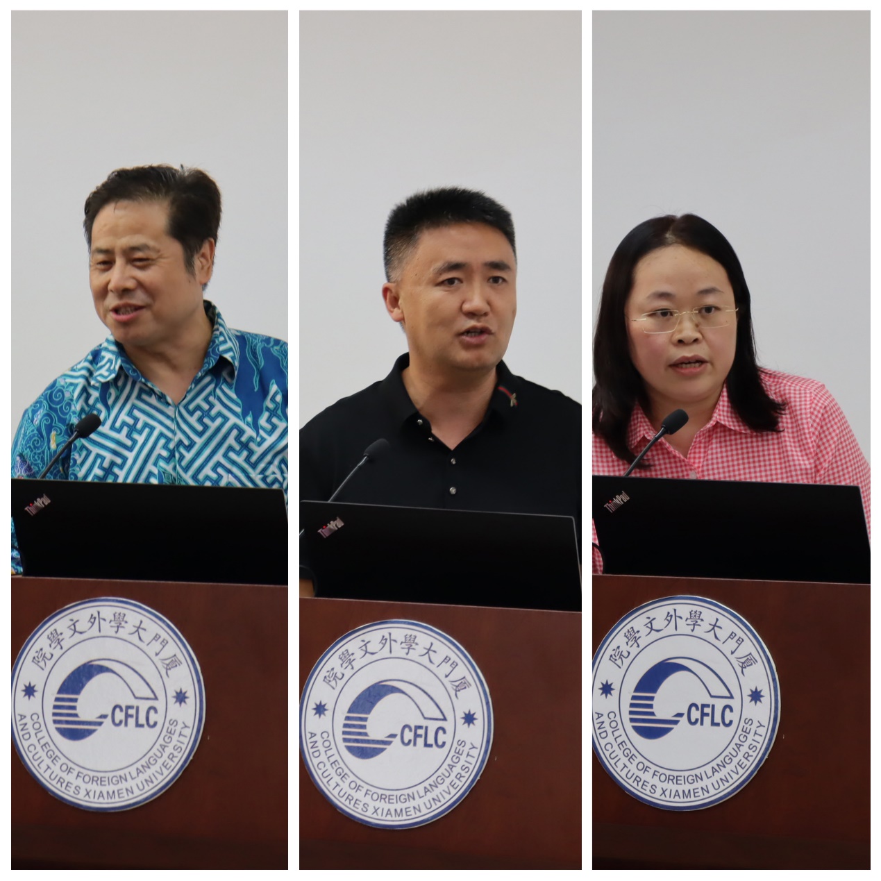 外文学院胡兆云教授、白雪峰教授、于丹红助理教授作为校级课程思政立项教师代表,在活动现场分享了课程思政经验。