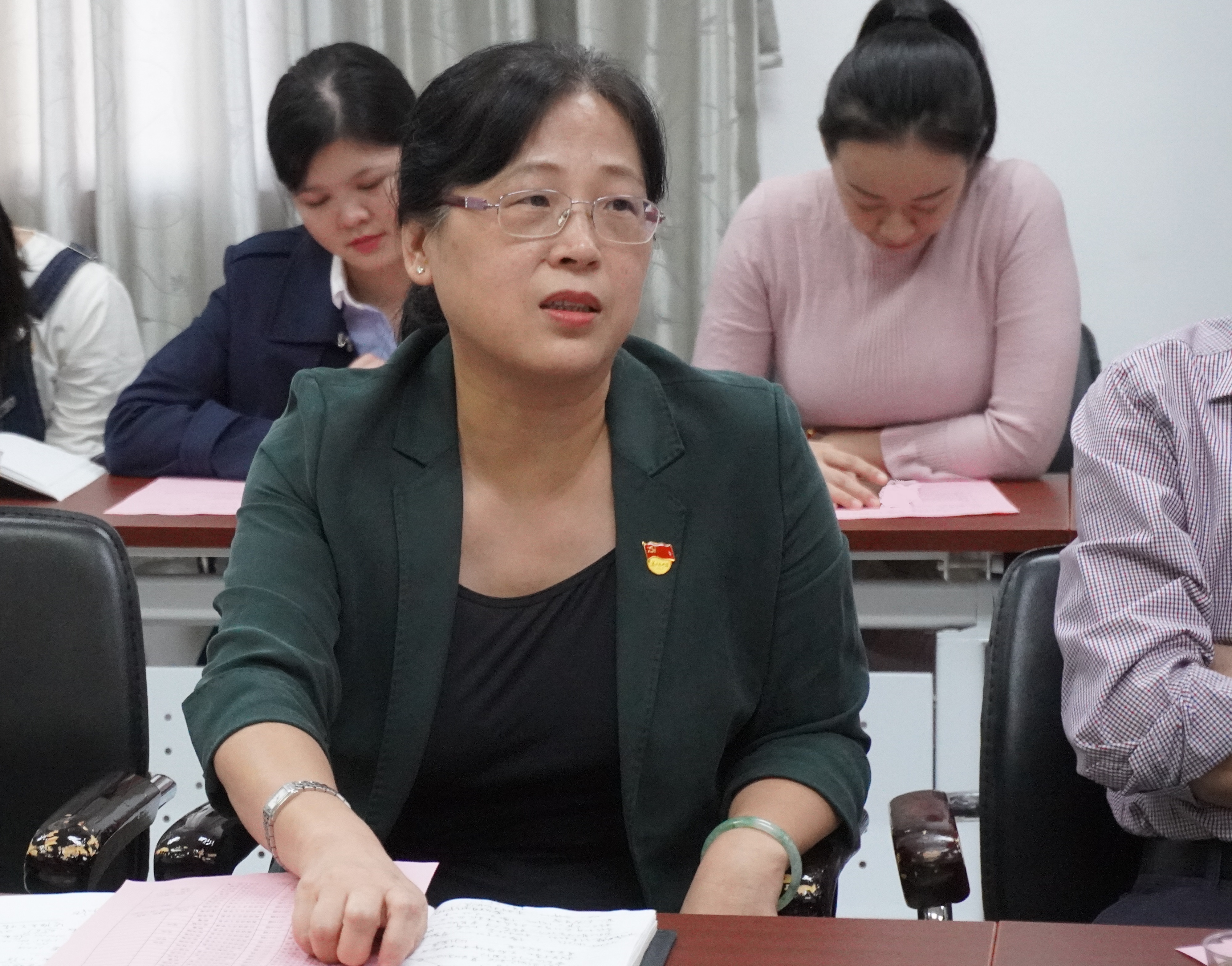 沈丽秀副书记分享了题为《聚焦党建,发挥作用》的研究生党建调研报告,深入分析了在研究生党员中开展调查问卷的结果,指出研究生党建活动形式不够丰富、研究生党员对党建活动积极性不够高、利用“学习强国”等平台开展学习主动性不高等问题,并指出博士生党支部建设努力的方向。