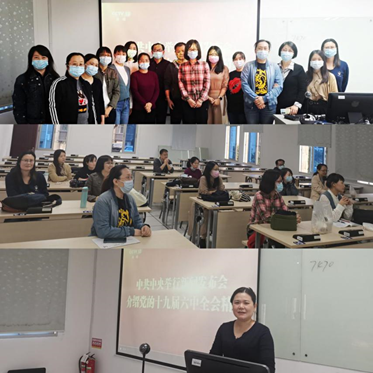 11月15日下午,外语教学部教工第一党支部在南光三323教室召开了十九届六中全会精神专题学习会,会议由方芳同志主持。全体党员同志一起观看了中共中央介绍党的十九届六中全会精神的新闻发布会视频。
