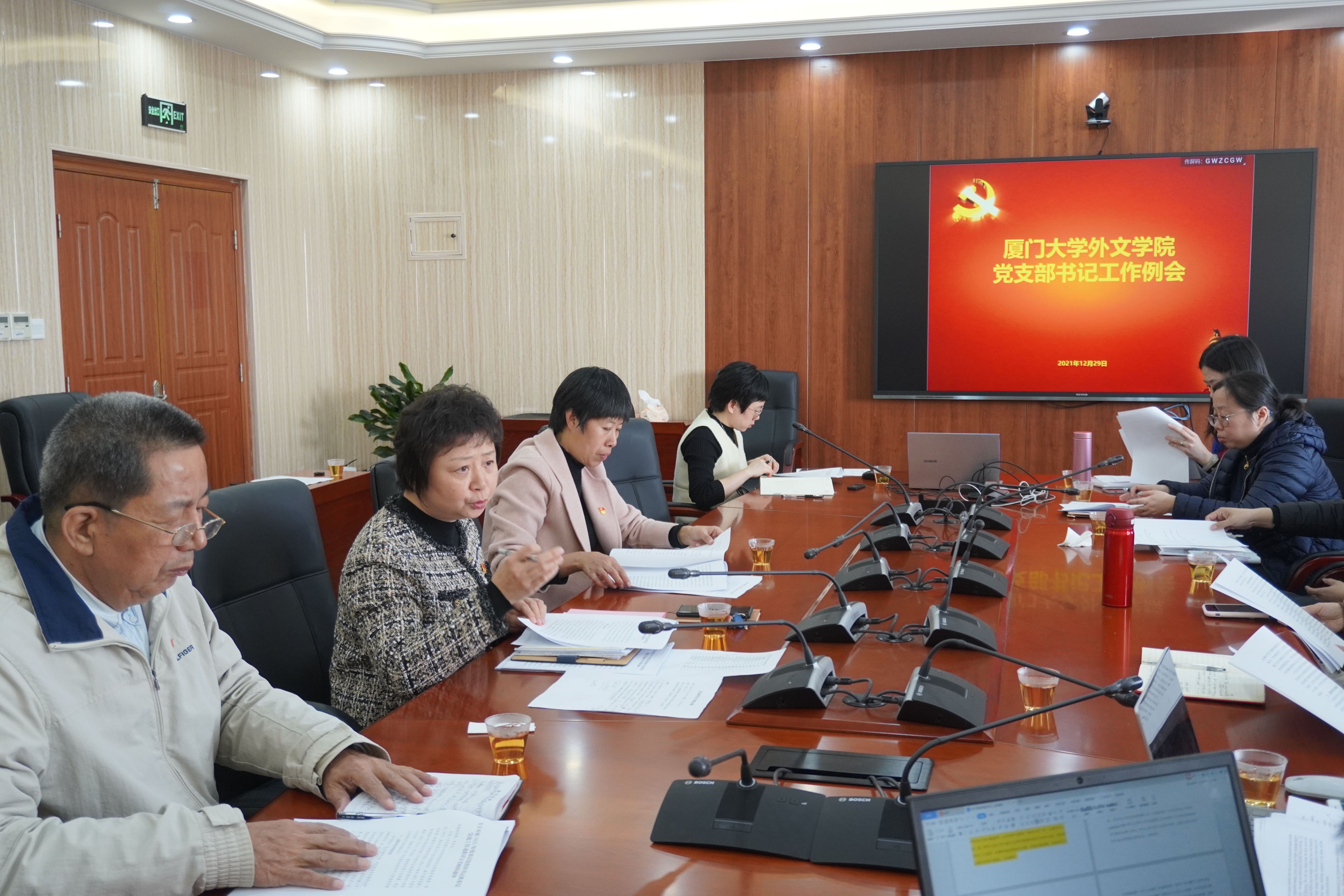 随后,会议部署了2021年度党支部书记抓基层党建工作述职评议考核工作和本科生党支部委员补选工作,强调了《外文学院党支部书记工作例会制度》,进一步加强党支部书记队伍建设,强化党支部政治功能。