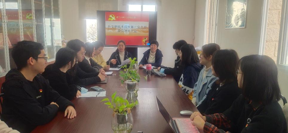 为严肃党内政治生活,严格党的组织制度,进一步加强党支部建设,外文学院本科生第二党支部于1月5日上午在德贞楼401召开支部委员会委员补选会议。会议由党支部张元昕同志主持,外文学院党委副书记沈丽秀同志参会。