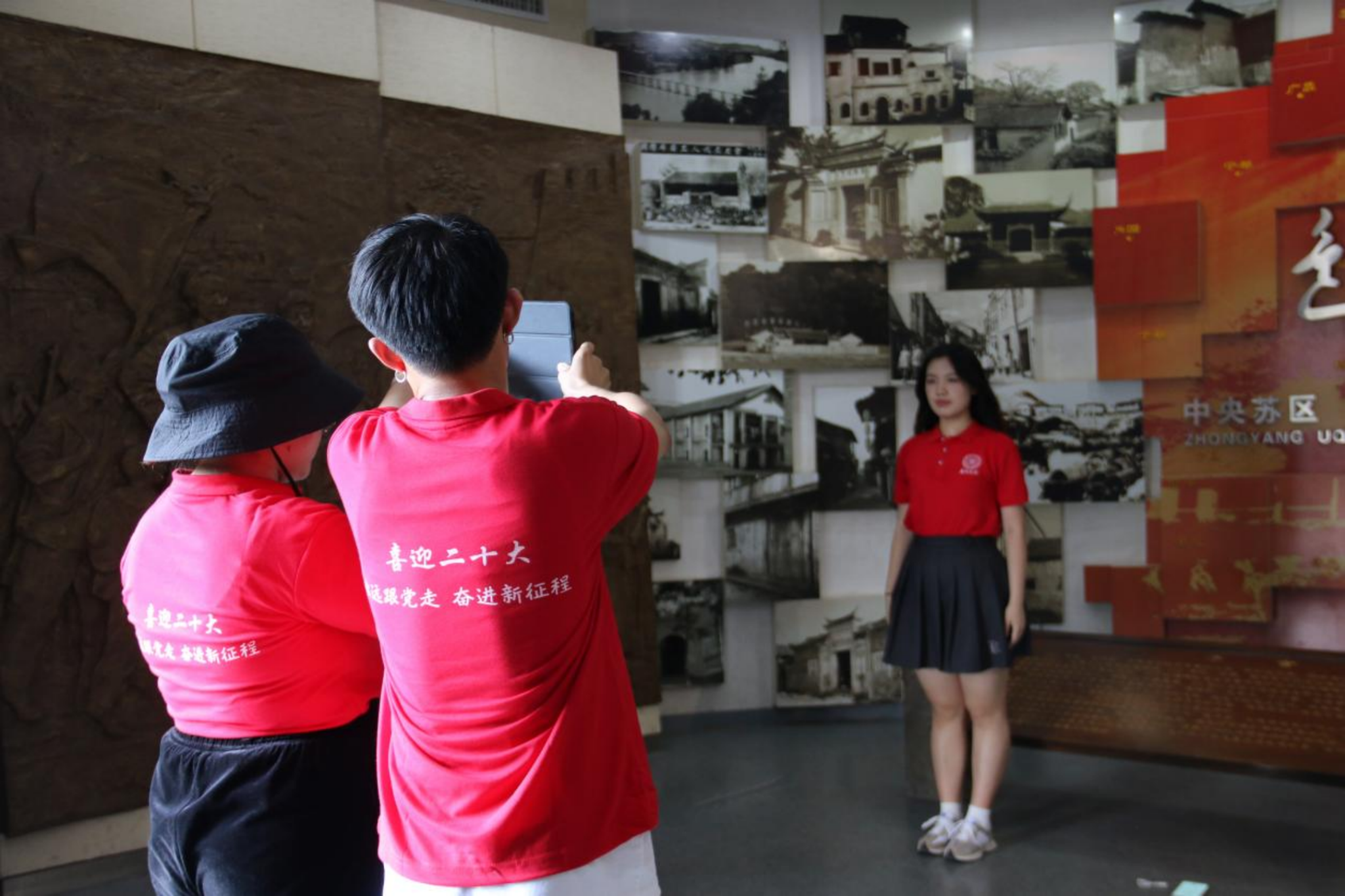 实践队队员在福建省苏维埃政府旧址录制外宣视频