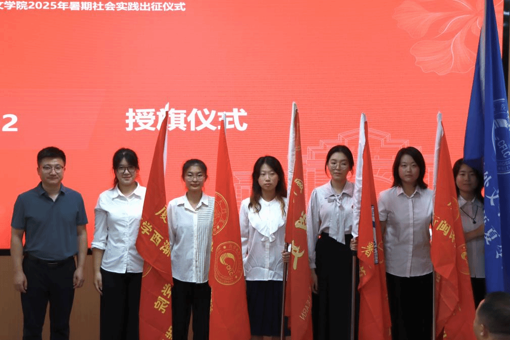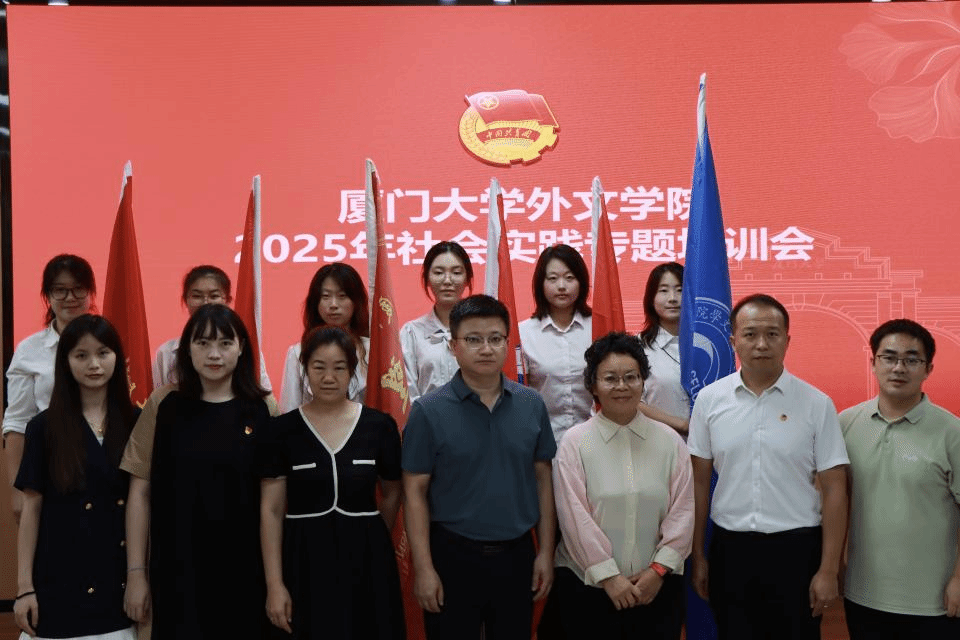 为深入学习宣传贯彻习近平新时代中国特色社会主义思想,充分发挥社会实践的育人作用,引导和帮助广大青年学子在“社会大课堂”中“受教育、长才干、作贡献”,6月30日,外文学院2025年暑期社会实践出征仪式暨专题培训会在德贞楼112报告厅举行。学院党委副书记张胜强、罗俊峰,学院辅导员以及实践队代表和本研实践委员代表参加出征仪式。仪式由实践统筹部干事王欣雨主持。