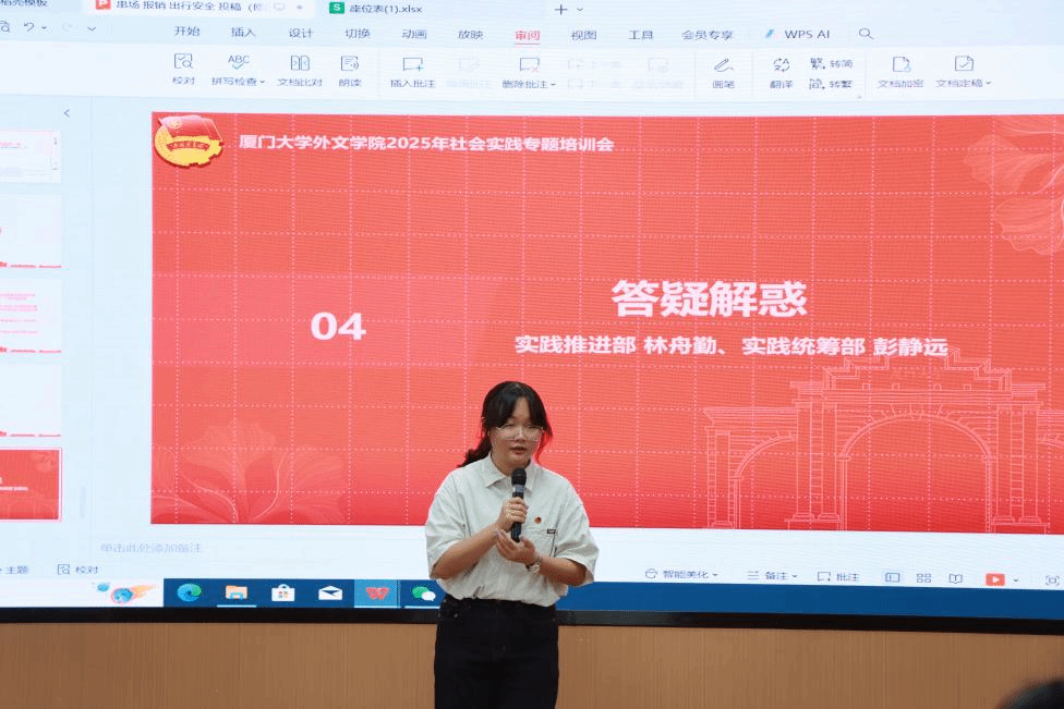 最后,实践推进部代表林舟勤和实践统筹部代表彭静远同学进行现场答疑,针对大家关心的问题进行了详细的解答,让大家对暑期社会实践的具体要求及注意事项有了更清楚的认识和了解。