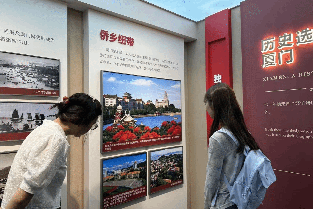 实践队队员们依次参观了“厦门经济特区开创阶段”“厦门经济特区发展阶段”“增创新优势阶段”“新跨越阶段”等四个展馆。展馆内一幅幅历史照片、一件件珍贵实物、一个个生动故事将厦门从滨海小城成长为现代化特区的伟大历程娓娓道来。通过图文展板、实物陈列和多媒体互动设备,队员们深入了解了厦门经济特区从设立、试点到探索、突破的发展历程,尤其是习近平总书记针对厦门提出的一系列战略构想等,如对台经贸交流、引进外资、推动城市基础建设等重大工程和政策思路,成为实践队此次调研中的重点学习内容。这些改革举措,背后是对人民福祉最深切的关注,也是“敢为人先、爱拼会赢”精神的真实写照。