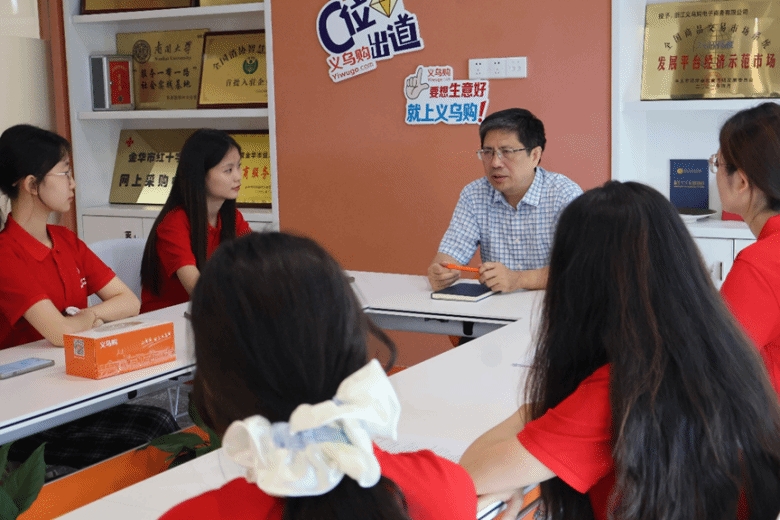 16日上午,实践队队员们探访浙江义乌购电子商务有限公司,揭秘这座“线下巨无霸”背后的数字引擎。作为链接7万余家实体商铺与全球采购商的B2B平台,“义乌购”通过3D全景商铺、信用评价等功能,构建了“线上+线下”的贸易闭环。“信任是外贸的核心,AI再先进也无法完全代替人与人的沟通,”市场负责人杨先生强调。为此,“义乌购”不仅引入留学生实习生促进文化交流,还联合高校培养复合型外贸人才。