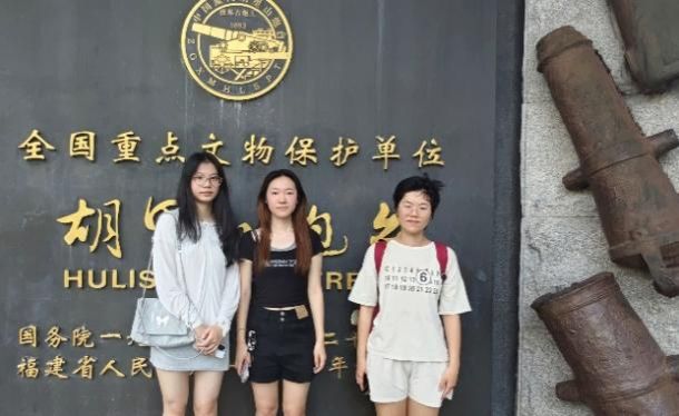 8月9日,实践队到达胡里山炮台,巨大的克虏伯大炮沉默地指向大海,黝黑的炮身刻满岁月痕迹。队员们围拢上去,指尖触碰冰凉的钢铁,感受历史的厚重。队员们对照景区文字说明和手机查询的资料,一名队员介绍炮台结构,另一名则分享清末海防的困境与教训。“再坚固的炮台,也难以弥补国力的落后。唯有自强不息,才是根本之道。”