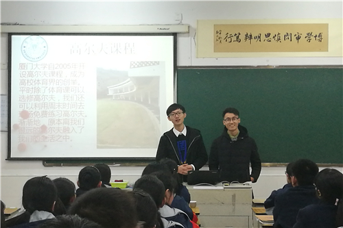 1月19日,厦门大学外文学院“2017寒假招生宣传”寒假社会实践队于返回高中母校浙江省富阳中学开展了“2017年寒假招生宣传”专项行动。