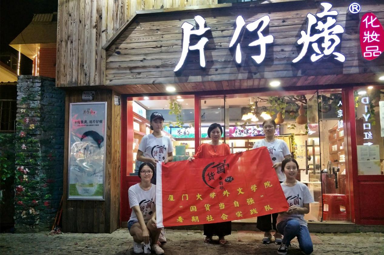 为增强当代青年文化自信,响应“国家品牌计划”,助力建设制造强国,7月16日至8月17日,厦门大学外文学院“国货当自强”暑期社会实践队赴闽、京等地,通过实地调研、电话采访等多种形式,圆满完成了调研活动。通过深入调查研究成功转型的老牌国货片仔癀、传统国货代表戴春林和新兴国货品牌兰心惠质等各具特色的国产护肤品牌,队员们对国货发展现状有了更加清晰全面的了解,也对国货发展创新的探索有了全新的思考和感悟。