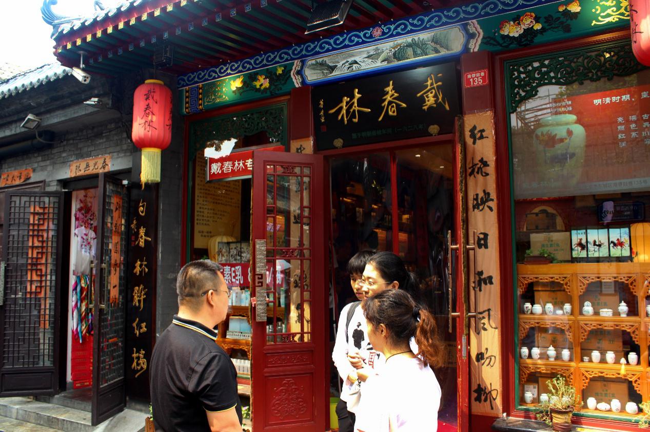实践队员在戴春林北京南锣鼓巷门店前合影