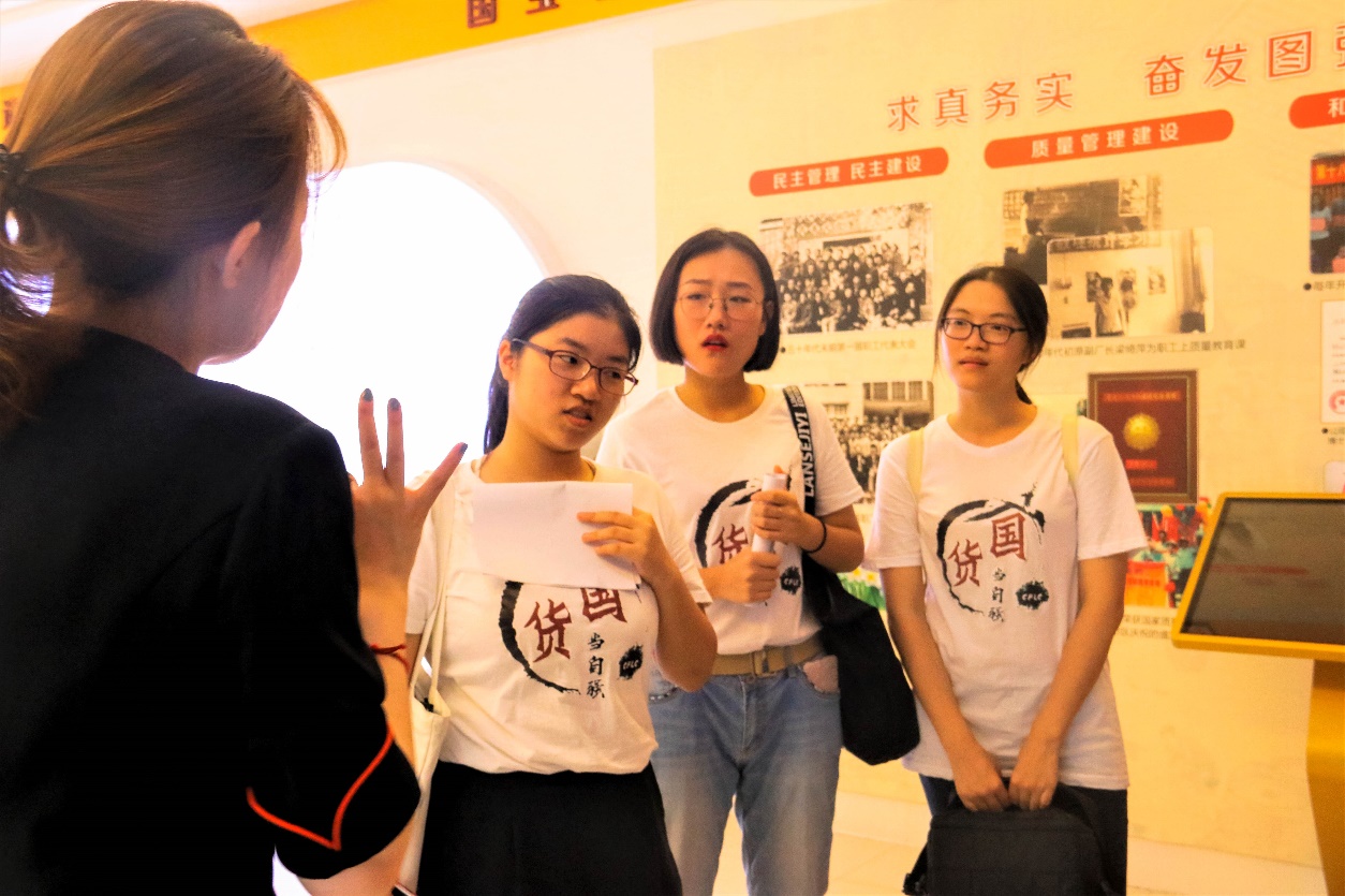 实践队的第一站是福建片仔癀化妆品有限公司漳州总部。在前往实践地之前,队员们结合片仔癀公司的实际发展情况,设计了调查问卷,从不同层面有针对性地开展调研。队员们在工作人员的引导下,参观了片仔癀企业文化馆并采访了市场部组长王文停。王组长就片仔癀的成功转型、国产品牌与外国品牌竞争的优劣势以及片仔癀发展瓶颈分享了经验和看法,令队员们真切领悟到片仔癀传承传统工艺的追求和初心。