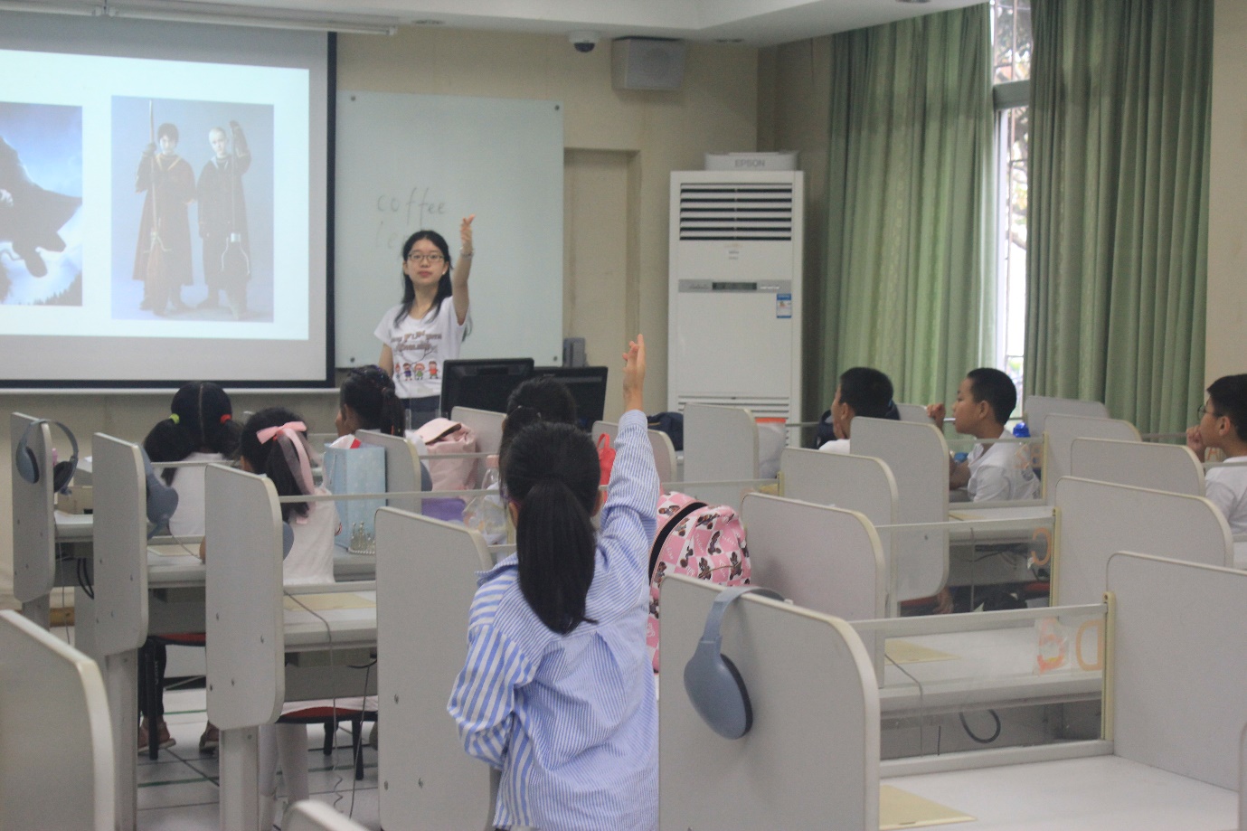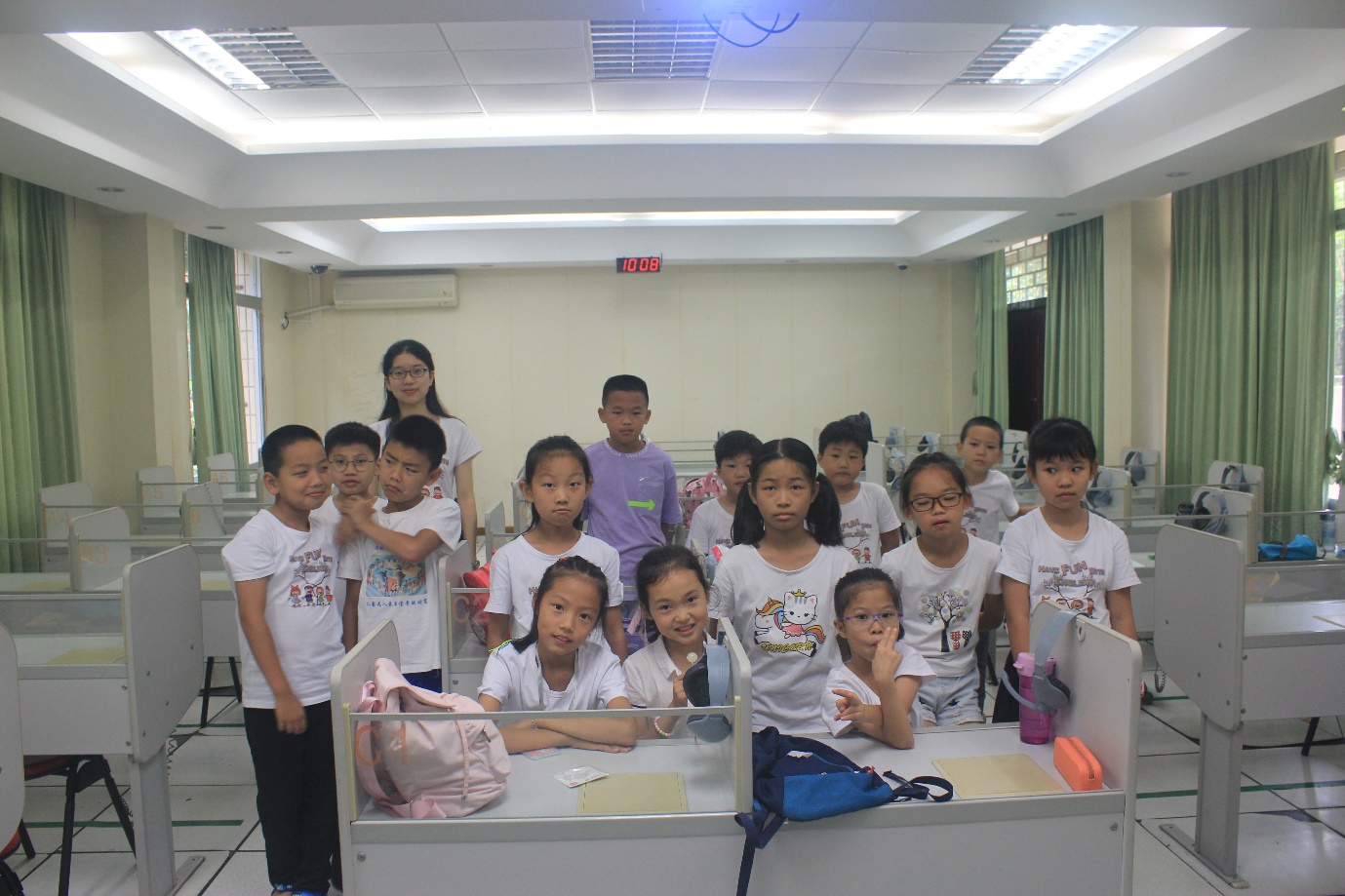 为了提高营员们对课程的接受度和参与度,实践队员们根据营员的年龄大小与英语水平,有针对性地设计课堂内容和教学形式。为了帮助营员们更好地巩固前四日所学,负责低年级教学的实践队员们将新课与复习相结合,在教授新知识点的同时,穿插对已学内容的提问与检查;并通过开展“你画我猜”、“单词抢答”、“Hangman”等趣味游戏,在欢笑声中加深营员们对单词与句式的印象,真正实现了玩中学,学中乐,乐有所获。