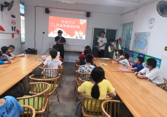 今天教学活动的主题是“社会主义革命和建设时期”。实践队员们选取了这一时期发生的重要历史事件、涌现的一批先进人物以及他们的先进事迹进行了介绍。