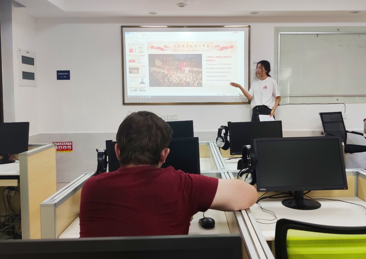 为庆祝中国共产党建党100周年,7月6日上午,我们实践队以“建党历史”为主题给留学生们上了一节课。根据参与课程的留学生的中文水平,主讲人张书萍同学决定全程使用英语对中国共产党的建党历史进行讲解。