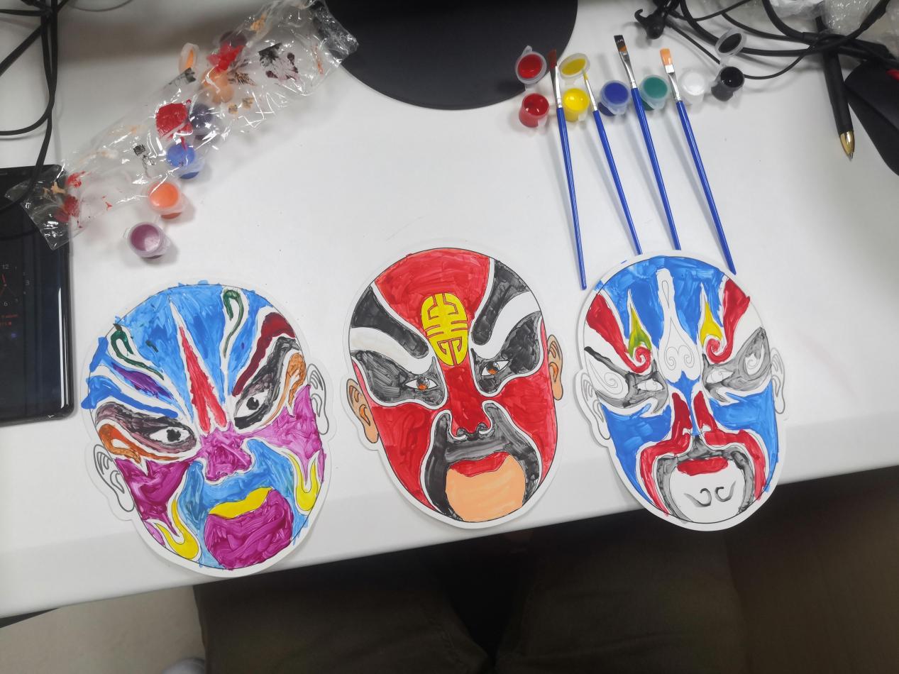 本次课程由我校专业的京剧社团成员龚先明同学讲授,在课堂中,留学生们观看了当今优秀京剧艺术家的表演片段,了解了京剧的来源、特点及四大流派。知识讲解结束后,实践队员们准备了脸谱的平面和立体的面具以及多彩的颜料和画笔,由留学生自主选择去画自己喜欢的脸谱并赋予角色内涵。留学生们对此跃跃欲试,拿起画笔准备大显身手。最后,每个人都成功地画了自己喜欢的面具脸谱,收获了满满的成就感。