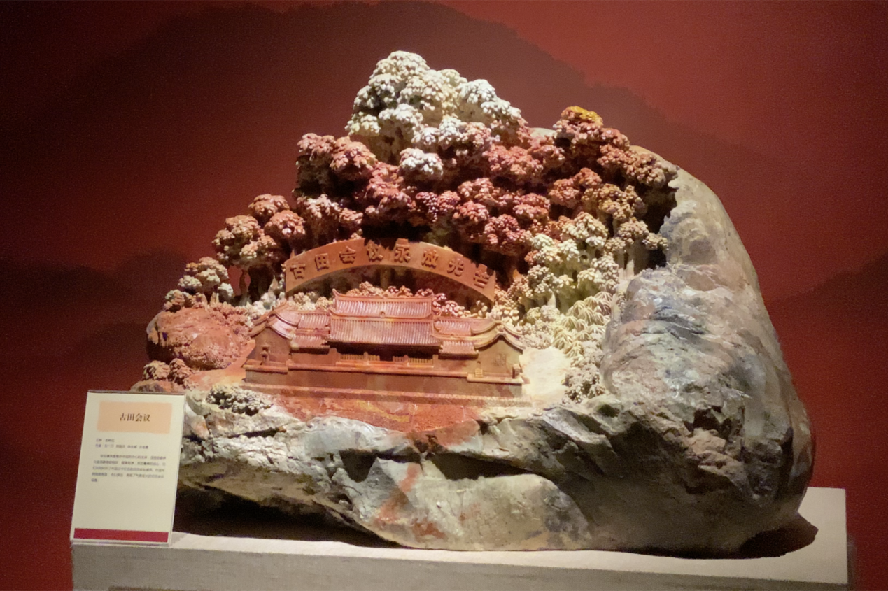 实践队还有幸参观了于一楼设置的限时展出的特殊展馆。馆内展示了众多精美绝伦的石雕作品。这些令人叹为观止的石雕艺术,向世人炫耀着老福州独有的民间传统工艺。其中,“古田会议会址”和“遵义会议”两个石雕作品巧夺天工,令实践队员们印象尤为深刻。