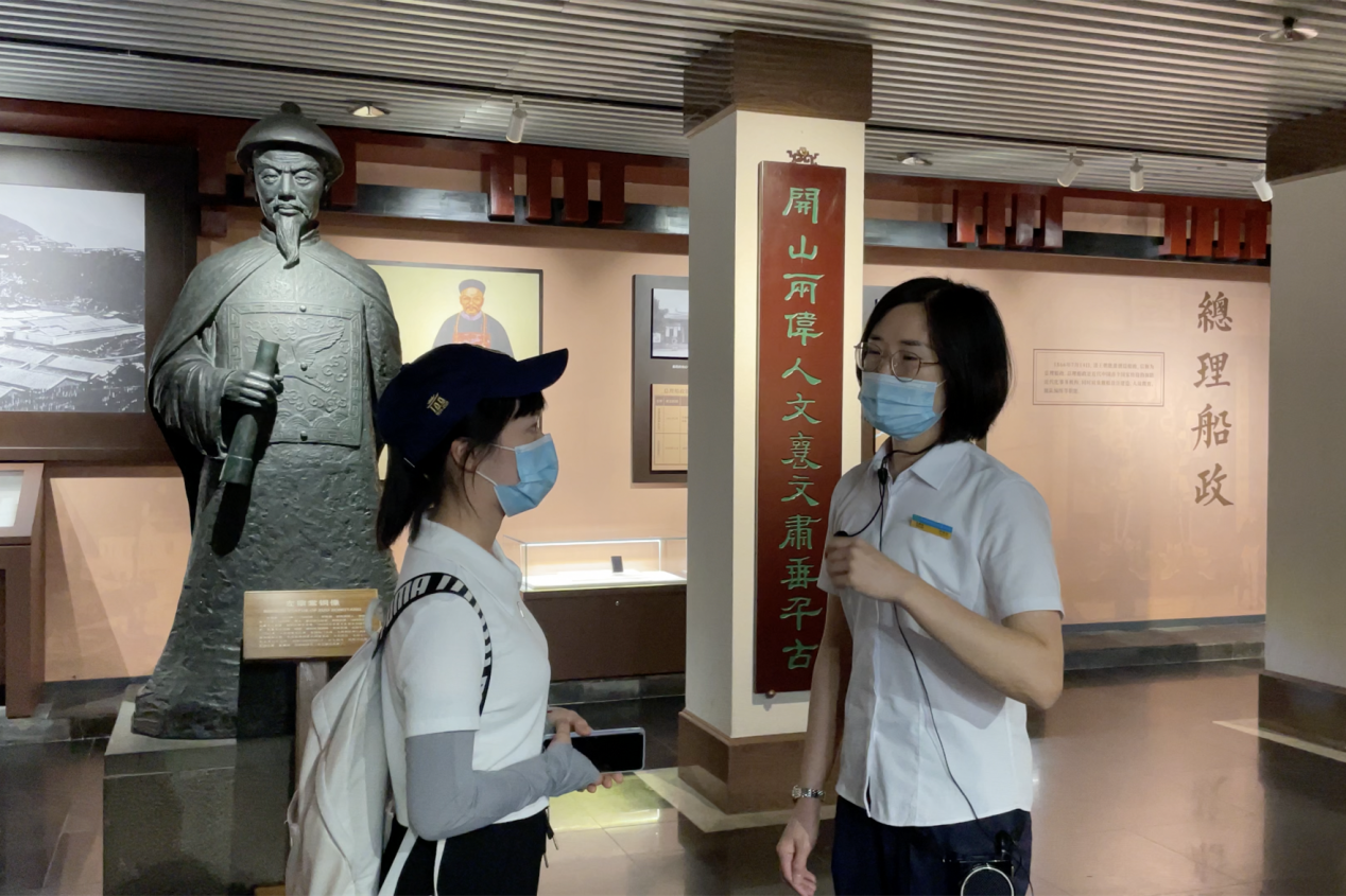 随后,实践队员们来到了位于古港马尾的中国船政文化博物馆。苍苍鼓山,泱泱闽水,依山傍水的福州马尾是中国船政文化的发祥地和近代海军的摇篮。早在东汉时期,福州人就与东南亚地区有贸易往来;唐宋时期,福州已成为“百货随潮船入市,万家沽酒户垂帘”的国际贸易港口,是“海上丝绸之路”的重要门户;明代,郑和七下西洋,使福州港正式成为国家港口,滨海繁华城市。实践队在博物馆认真地参观学习了船政概览、科教夙兴、产业先驱等展区。队员们都了解了近代中国先进科技、高等教育、工业制造、西方经典文化翻译传播等丰硕成果,学习了诸多仁人志士及其先进思想,并钦佩于其中折射出的中华民族特有的砺志进取、虚心好学、博采众长、勇于创新、忠心报国的传统文化神韵。这,便是福州的船政文化,它是福州人民涵泳百年不懈的历史骄傲,是中华民族世代相传的精神瑰宝。
