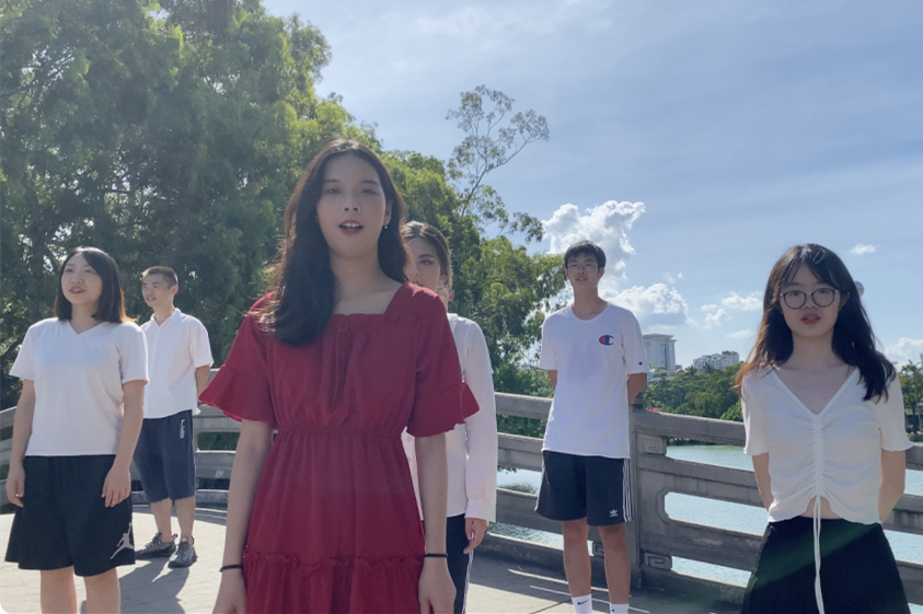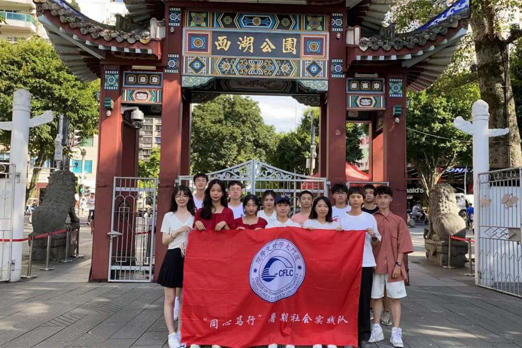 福州之行的最后,实践队来到西湖公园。园内长堤卧波,垂柳夹道。绿荫掩映的湖岛、拱桥、亭台楼榭,赏心悦目。福州的西湖水,恬静而娴雅,犹如无暇的翡翠。在阳光的照射下,湖水波光粼粼,像被揉皱的绿缎。在美丽的湖景的衬托下,队员们一起合唱了《唱支山歌给党听》、《我和我的祖国》等红歌,为本次福州之行划下圆满的句号。