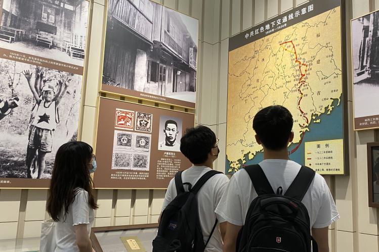 福州的第一站,实践队员们来到了福建省革命历史纪念馆。展馆内展出革命文物800余件和历史照片800余幅。参观学习在展史料过后,实践队员们了解了福建自1840年鸦片战争到1949年新中国成立的百年历史风云,以及福建中央苏区军民在党的领导下浴血奋战、前赴后继、为中国革命做出巨大贡献和牺牲的革命史。对这些史料的参观和学习不仅增长了队员们的知识,也让队员们深切体会到老一辈革命家艰苦奋斗、不怕牺牲的革命精神。