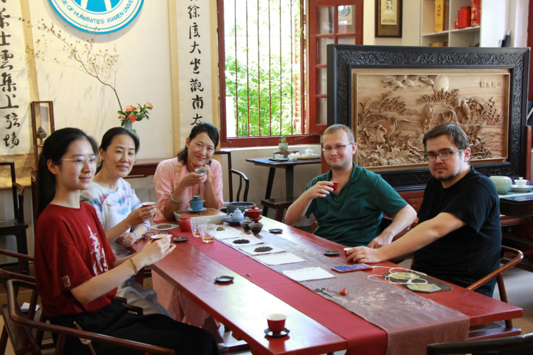 7月6日至7日,“东学西渐”实践队先后开展了传统茶艺课程及剪纸课程。茶艺课程在富有中国传统文化气息的茶艺教室——凤凰白鹭茶舍举行。实践队员们特别邀请了专业的茶艺老师为同学们授课。老师们将有关茶艺、茶道的知识和历史向大家娓娓道来,并亲手示范茶艺流程。留学生们听得全神贯注,并积极向老师提问。老师也耐心地一一讲解,大家其乐融融。