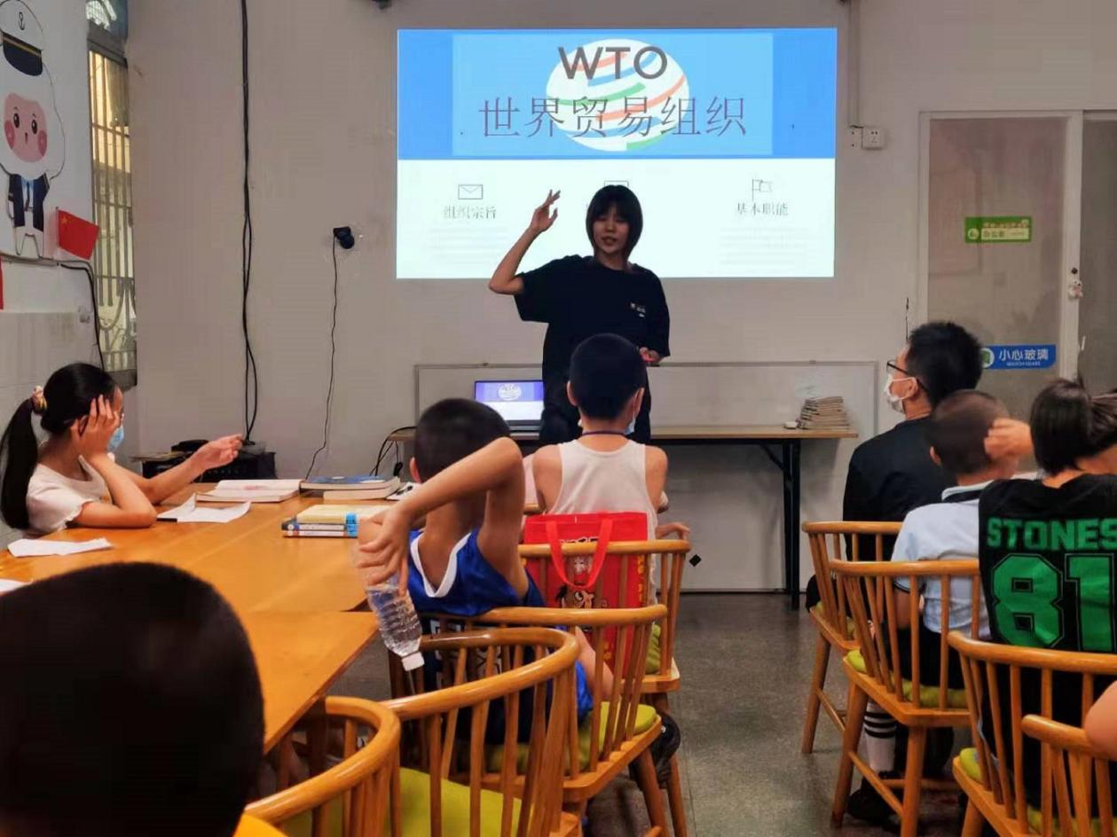 为了拓展孩子们的知识面,实践队员还发挥自身专业优势,开展了“外国儿童文学和国际组织知识”小讲堂。实践队员用这些内容,让孩子们了解国际社会,让他们在学习交流的过程中,感受世界不同文化的交流互鉴,让他们对世界产生更全面的认识。