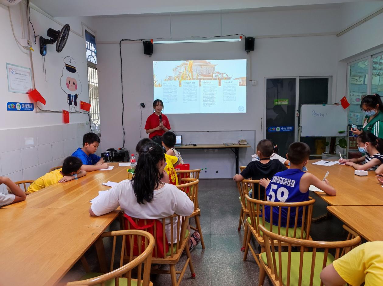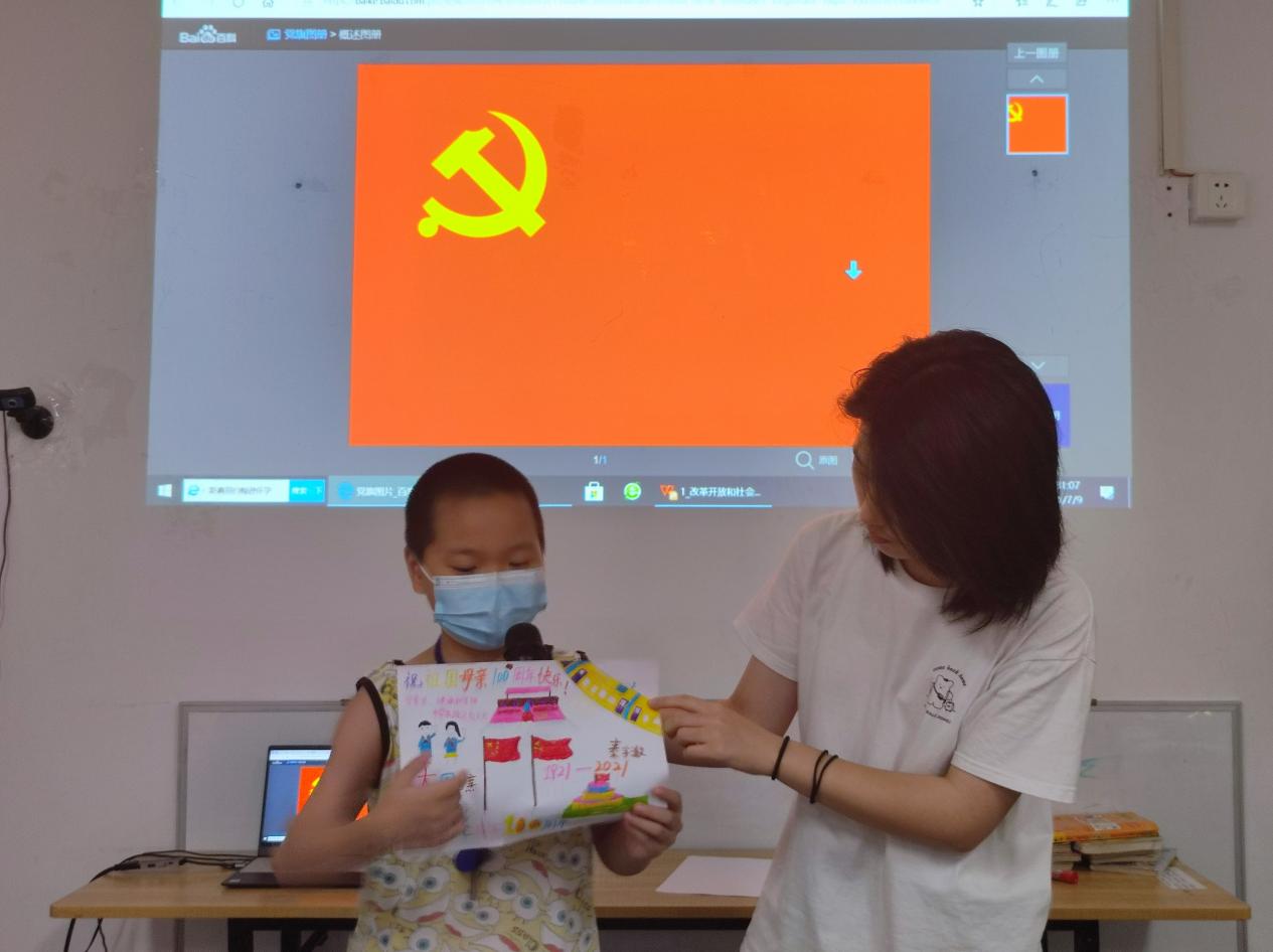 本次实践活动的第一部分是“党史校史”小课堂。“益厦青语”实践队以党的“新民主主义革命时期”“社会主义革命和建设时期” “改革开放和社会主义现代化建设新时期”“新时代中国特色社会主义建设新时期”四个阶段为主线,梳理了中国共产党不懈奋斗的伟大历程。从“泛舟南湖”到“革命建设”,从“改革开放”到“时代新篇”,一个个党史故事铸成了中国共产党灿若星河的精神丰碑,如西柏坡精神、雷锋精神、铁人精神、“两弹一星”精神等,点燃了孩子们的爱党爱国热情。实践队员还讲授了厦门大学百年历史及“四种精神”,增进了孩子们对厦门大学的了解,鼓励他们积极进取,奋发有为。课堂中,实践队员们结合“唱红歌”“创意绘画”等趣味活动,鼓励孩子们发挥想象力与创造力,将自己心中燃起的点点红色星火转化为铿锵有力的歌声和不拘一格的画作,为中国共产党建党百年献礼。