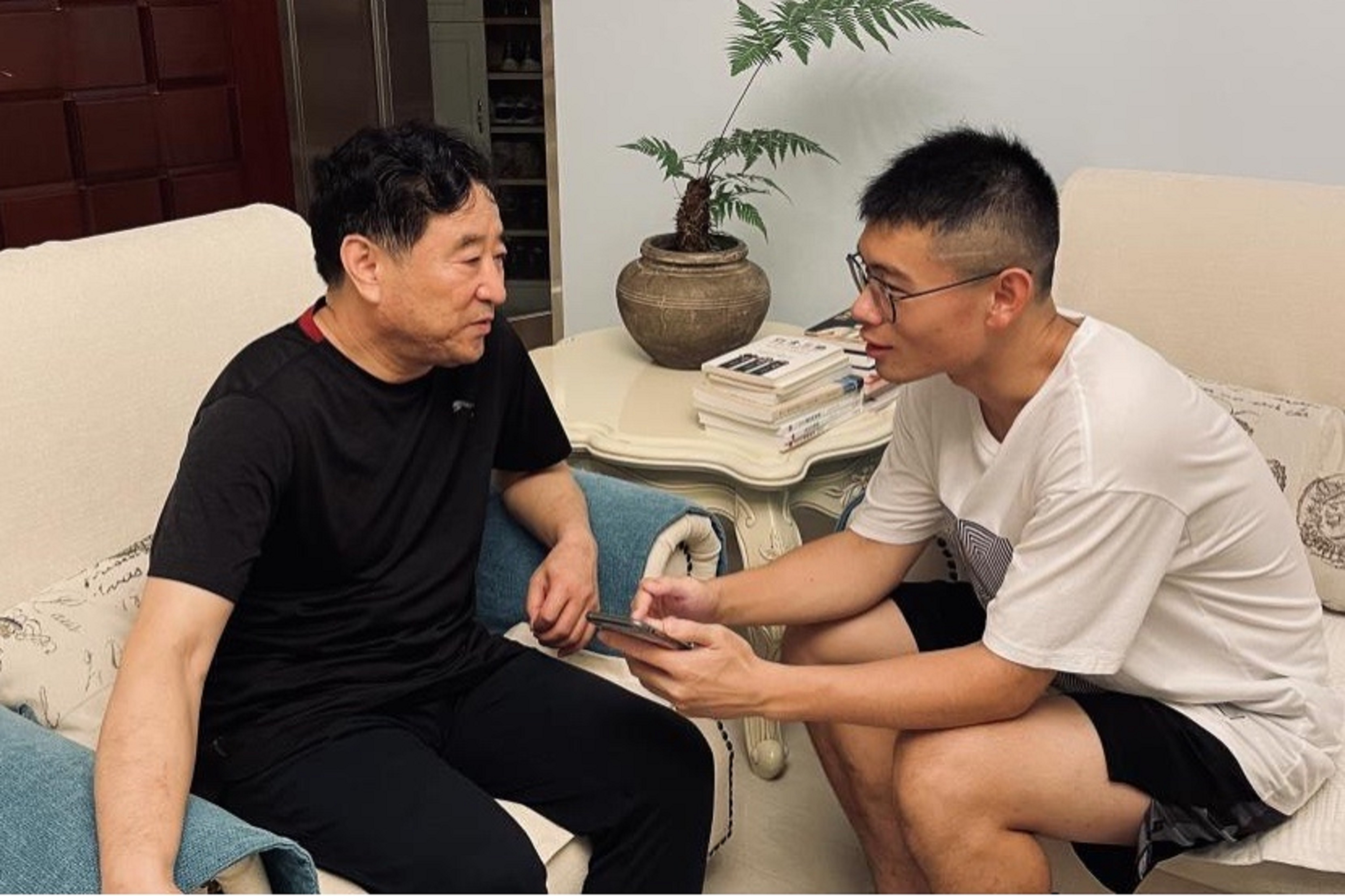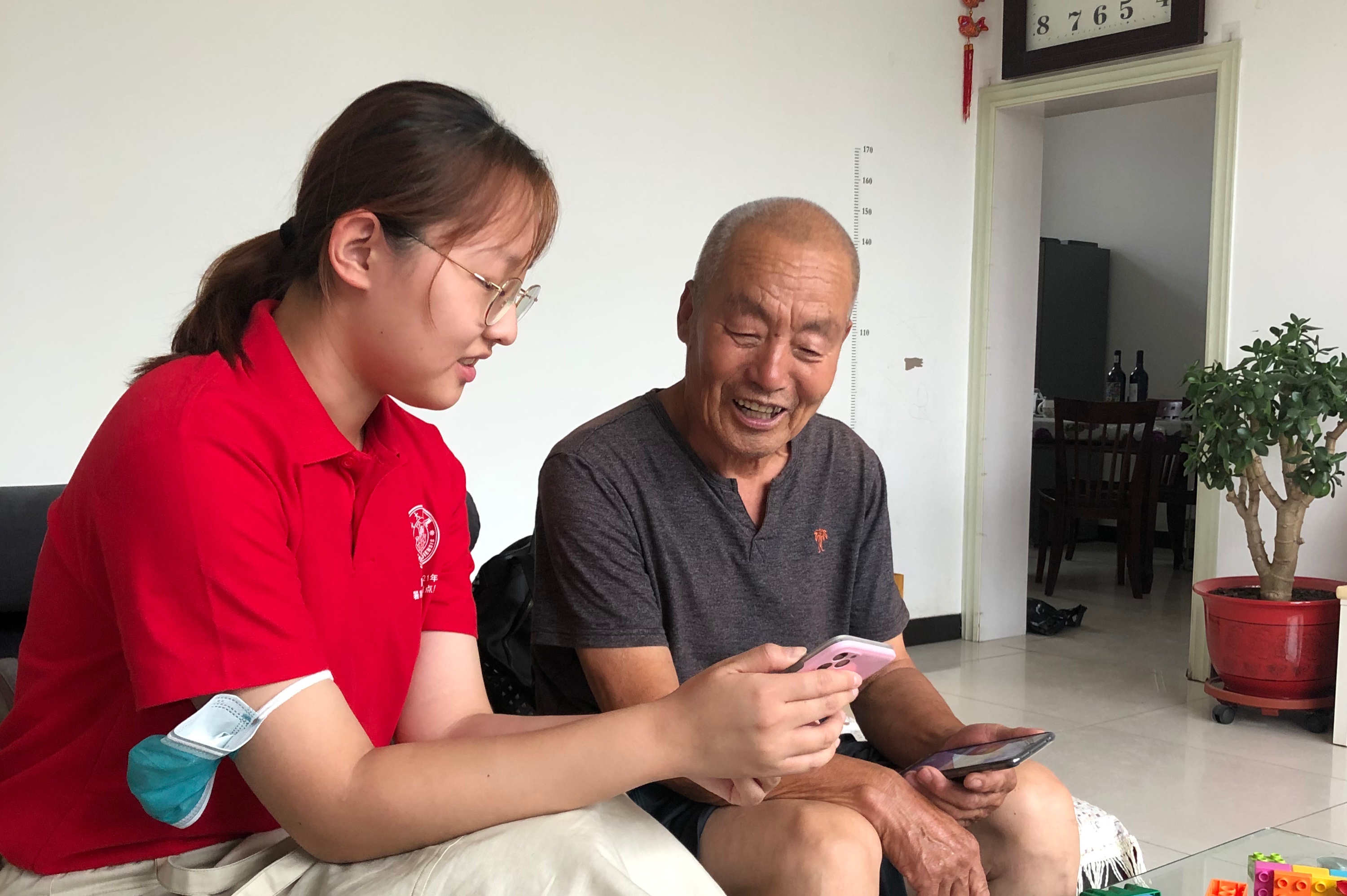 实践队员史涵君为老人讲解短视频使用方法