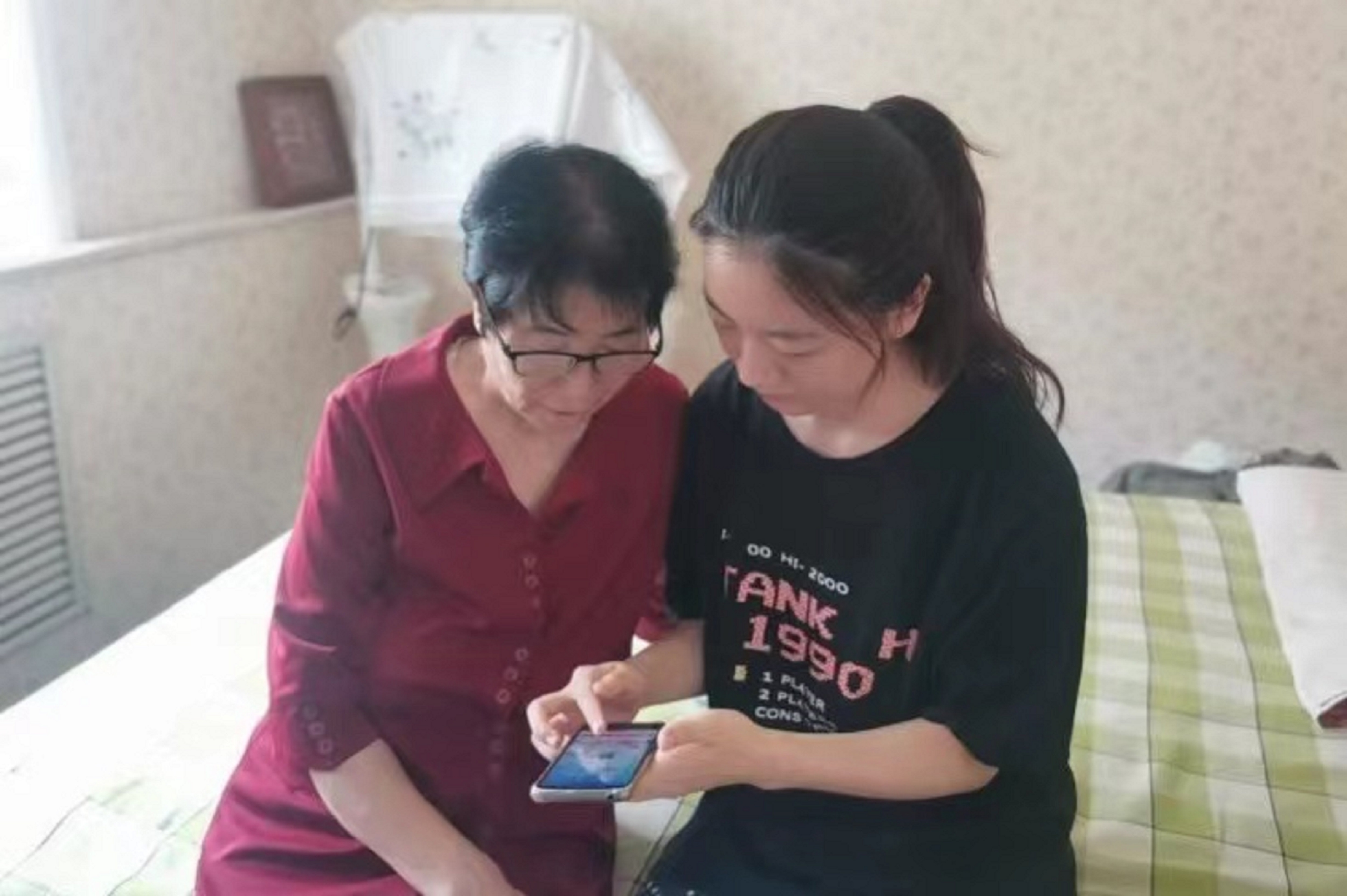 实践队员李泽颖向老人逐步操作演示