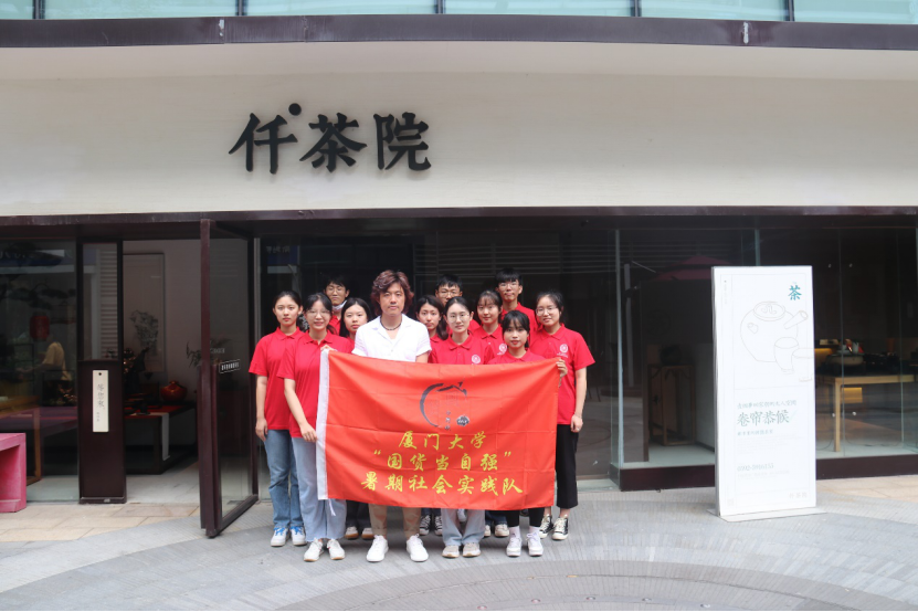 厦门大学外文学院“国货当自强”暑期社会实践队首先前往厦门市思明区仟茶院,调研陶瓷产业的优秀领军品牌“万仟堂”创立至今的所见所思,所创所为,所经所感,了解该产业发展历程与产业发展理念。在此次调研过程中,实践队员采访了万仟堂内容中心的总监——叶斌先生。叶斌先生向我们详细介绍了万仟堂的品牌理念、发展策略以及其产品的核心优势。万仟堂作为“一个承担使命的品牌”,致力于用陶土诠释东方美学,坚守传统又注重锐意创新,通过将传统文化形象化、具体化,使其作为产品内容宣传的基础,赋予陶瓷器品全新的质感和灵性。富有文化内涵的产品,是他们认为能在市场经济中制胜的重要法宝。而这也引发了实践队员关于如何将陶瓷文化更好地与产业经济相融合,让陶瓷乘上时代之东风的思考。