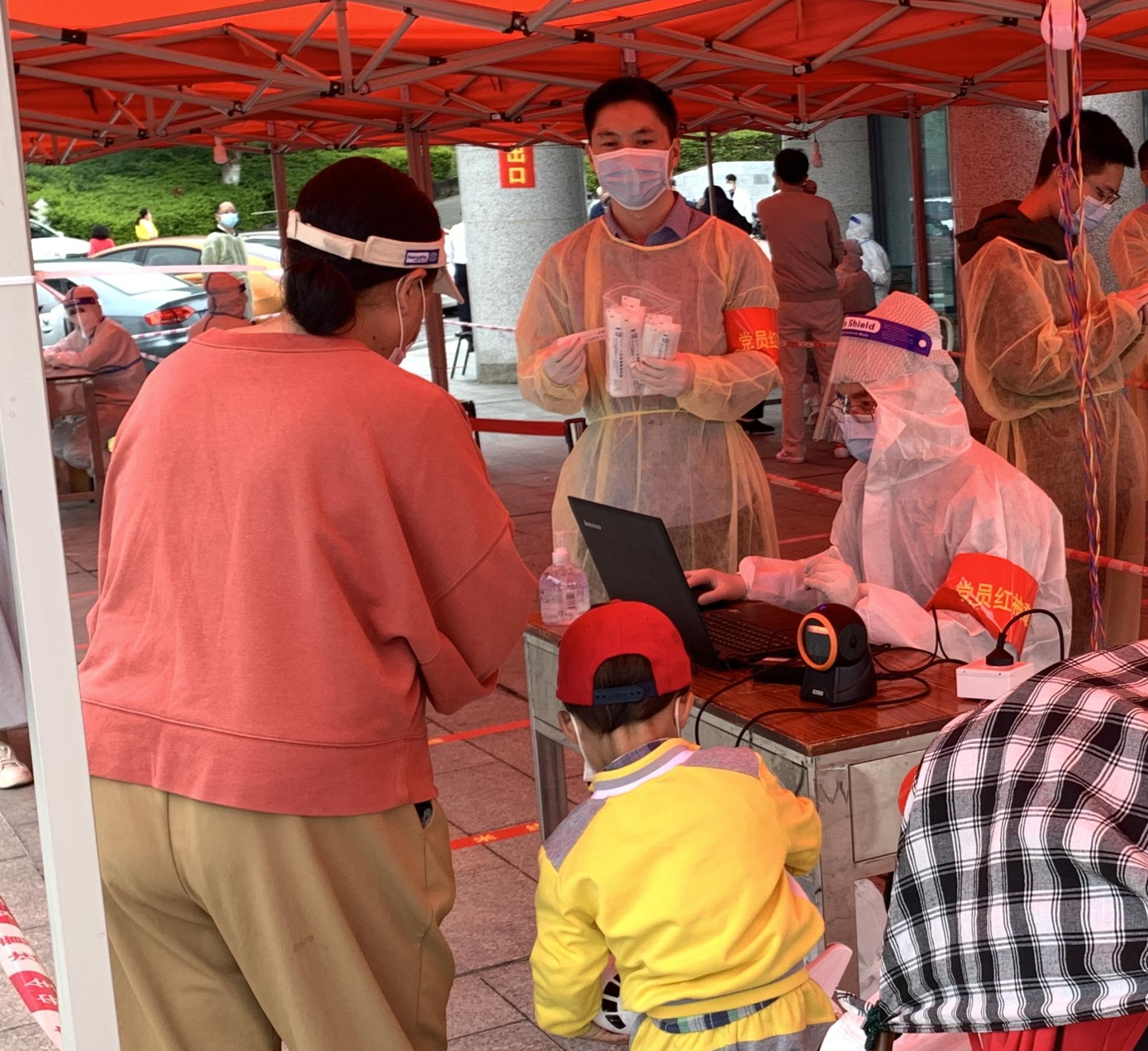 一面党旗就是一个阵地,白城检测点坚持旗帜引领,党员先行,让党旗在疫情防控一线高高飘扬。