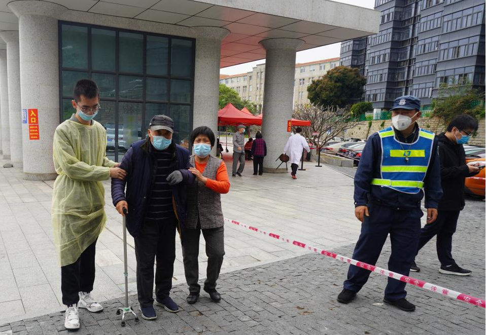 一位行动不便的老者在家人搀扶下来到检测点入口附近,徐琪书记见状,便协调在场医务负责人,为老人特事特办,开辟临时的“流动检测台”,由医务人员代为扫码登记,检测员主动上前检测,一分钟内便完成了老人及其家人的核酸检测。我们为有爱的医务组和志愿者点赞!