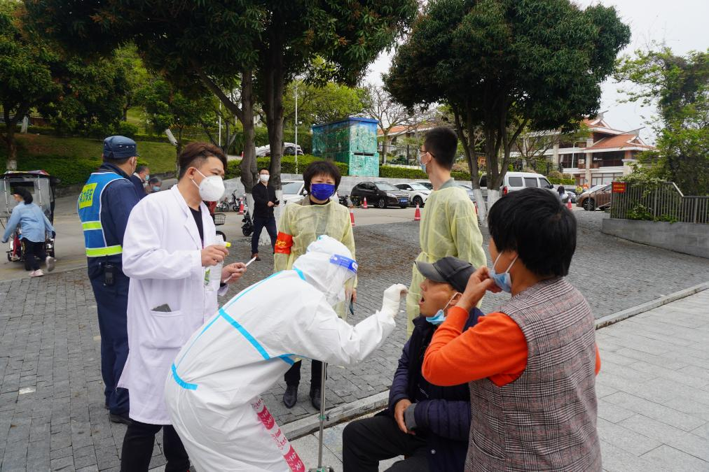3月21日下午,白城检测点开展第二次核酸检测,战疫“集结号”再次吹响。检测点负责人外文学院党委书记徐琪、材料学院党委书记刘立荣带领来自思明校区应急志愿服务队、外文学院和经济学院的22位志愿者,把使命扛在肩上,把群众放在心上,把各项工作落到实处细处。校党委副书记徐进功再次到白城核酸检测点关怀指导工作,学校应急管理办公室副主任、学校办公室副主任陈锦华陪同。